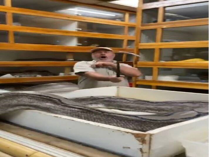 ਇਹ ਵੀਡੀਓ ਕਲਿੱਪ ਕੈਲੇਫੋਰਨੀਆ 'ਚ ਦ ਰੈਪਟਾਇਲ ਜੂ ਦੇ ਰੱਖਿਅਕ ਜੇ ਬ੍ਰੂਅਰ ਨੇ ਸ਼ੇਅਰ ਕੀਤੀ ਹੈ। ਜੇ ਬ੍ਰੂਅਰ ਸੱਪਾਂ ਸਮੇਤ ਕਈ ਰੈਪਟਾਇਲ ਜੀਵਾਂ ਦੇ ਰੱਖਿਅਕ ਹਨ ਤੇ ਸੋਸ਼ਲ ਮੀਡੀਆ 'ਤੇ ਕਾਫੀ ਫੇਮਸ ਵੀ ਹੈ। ਉਹ ਅਕਸਰ ਜੂ 'ਚ ਰਹਿਣ ਵਾਲੇ ਸੱਪਾਂ ਦੇ ਵੀਡੀਓ ਸ਼ੇਅਰ ਕਰਦੇ ਰਹਿੰਦੇ ਹਨ। ਜਿੰਨ੍ਹਾਂ ਨੂੰ ਲੋਕ ਪਸੰਦ ਵੀ ਕਰਦੇ ਹਨ।
