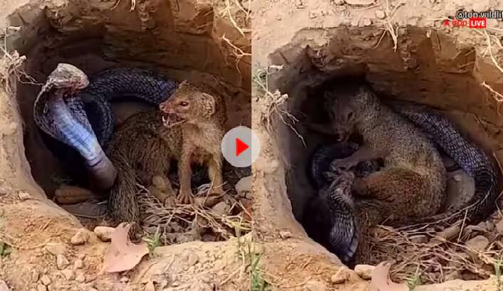 Snake Vs Mongoose Fight Video: ਅਸੀਂ ਅਕਸਰ ਹੀ ਨਿਓਲੇ ਅਤੇ ਕੋਬਰਾ ਦੀ ਲੜਾਈ ਦੀਆਂ ਕਈ ਕਹਾਣੀਆਂ ਸੁਣਦੇ ਰਹਿੰਦੇ ਹਾਂ। ਪਰ ਹੁਣ ਇਕ ਅਜਿਹਾ ਵੀਡੀਓ ਸੋਸ਼ਲ ਮੀਡੀਆ 'ਤੇ ਤੇਜ਼ੀ ਨਾਲ ਵਾਇਰਲ ਹੋ ਰਿਹਾ ਹੈ, ਜਿਸ ਵਿੱਚ ਕੋਬਰਾ ਅਤੇ ਨਿਓਲੇ ਇਕ ਦੂਜੇ 'ਤੇ ਜਾਨਲੇਵਾ ਹਮਲਾ ਕਰਦੇ ਨਜ਼ਰ ਆ ਰਹੇ ਹਨ। ਵੀਡੀਓ ਨੂੰ ਅੰਤ ਤੱਕ ਦੇਖਣ ਤੋਂ ਬਾਅਦ ਹੀ ਪਤਾ ਲੱਗਦਾ ਹੈ ਕਿ ਜ਼ਿੰਦਗੀ ਦੀ ਲੜਾਈ ਕੌਣ ਜਿੱਤਿਆ ਤੇ ਕੌਣ ਹਾਰਿਆ। ਲੋਕ ਹੁਣ ਇਸ ਵੀਡੀਓ ਨੂੰ ਕਾਫੀ ਵਾਇਰਲ ਕਰ ਰਹੇ ਹਨ।