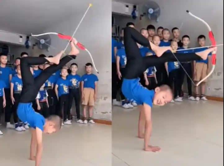 ਸੋਸ਼ਲ ਮੀਡੀਆ 'ਤੇ ਵਾਇਰਲ ਹੋਈ ਵੀਡੀਓ 'ਚ ਤੁਹਾਨੂੰ ਕਈ ਬੱਚੇ ਇਕੱਠਿਆਂ ਖੜ੍ਹੇ ਦਿੱਸਣਗੇ। ਇੱਕ ਬੱਚਾ ਅੱਗੇ ਤੀਰ ਲੈ ਕੇ ਖੜ੍ਹਾ ਹੈ। ਹੁਣ ਵੀਡੀਓ ਇੱਥੋਂ ਸ਼ੁਰੂ ਹੁੰਦੀ ਹੈ। ਬੱਚੇ ਦੇ ਇੱਕ ਹੱਥ ਵਿੱਚ ਤੀਰ ਕਮਾਨ (Bow Arrow) ਹੈ ਅਤੇ ਹੁਣ ਉਹ ਬੈਕ ਫਲਿਪ ਰਾਹੀਂ ਪੁੱਠਾ ਖੜ੍ਹਾ ਹੋ ਜਾਂਦਾ ਹੈ। ਹੁਣ ਤੀਰ ਕਮਾਨ ਬੱਚੇ ਦੇ ਦੋਹਾਂ ਪੈਰਾਂ ਵਿੱਚ ਹੈ ਅਤੇ ਬੱਚਾ ਹੱਥ 'ਤੇ ਖੜ੍ਹਾ ਹੈ। ਬੱਚਾ ਤੀਰ ਖਿੱਚਦਾ ਹੈ ਅਤੇ ਸਾਹਮਣੇ ਨਿਸ਼ਾਨੇ 'ਤੇ ਮਾਰਦਾ ਹੈ। ਬੱਚੇ ਦਾ ਨਿਸ਼ਾਨਾ ਬਿਲਕੁਲ ਸਹੀ ਲੱਗਦਾ ਹੈ।