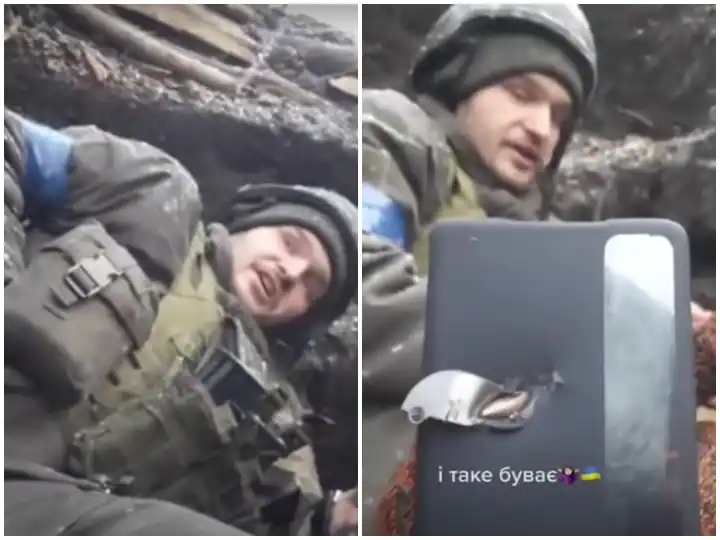 Watch Video: ਰੂਸ ਅਤੇ ਯੂਕਰੇਨ ਵਿਚਾਲੇ ਲਗਭਗ ਦੋ ਮਹੀਨਿਆਂ ਤੋਂ ਜੰਗ ਚੱਲ ਰਹੀ ਹੈ। 24 ਫਰਵਰੀ ਨੂੰ ਸ਼ੁਰੂ ਹੋਈ ਜੰਗ ਕਿਸੇ ਅੰਤ ਵੱਲ ਵਧਦੀ ਨਜ਼ਰ ਨਹੀਂ ਆ ਰਹੀ। ਦੋਵੇਂ ਦੇਸ਼ ਮਜ਼ਬੂਤੀ ਨਾਲ ਇਕ ਦੂਜੇ ਦਾ ਸਾਹਮਣਾ ਕਰ ਰਹੇ ਹਨ। ਜਿੱਥੇ ਰੂਸ ਨੇ ਯੂਕਰੇਨ ਦੇ ਕਈ ਸ਼ਹਿਰ ਤਬਾਹ ਕਰ ਦਿੱਤੇ ਹਨ। ਇਸ ਦੇ ਨਾਲ ਹੀ ਯੂਕਰੇਨ ਨੇ ਵੀ ਰੂਸ ਦੇ ਕੰਟਰੋਲ ਤੋਂ ਆਪਣੇ ਕੁਝ ਇਲਾਕੇ ਵਾਪਸ ਲੈ ਲਏ ਹਨ। ਦੋਵਾਂ ਦੇਸ਼ਾਂ ਦੇ ਵਿਨਾਸ਼ਕਾਰੀ ਯੁੱਧ ਦੀਆਂ ਕਈ ਤਸਵੀਰਾਂ ਅਤੇ ਵੀਡੀਓ ਇੰਟਰਨੈੱਟ 'ਤੇ ਵਾਇਰਲ ਹਨ। ਇੱਕ ਹੈਰਾਨ ਕਰਨ ਵਾਲਾ ਵੀਡੀਓ ਕੁਝ ਦਿਨਾਂ ਤੋਂ ਕਾਫੀ ਦੇਖਣ ਨੂੰ ਮਿਲ ਰਿਹਾ ਹੈ। ਵੀਡੀਓ 'ਚ ਇਕ ਯੂਕਰੇਨੀ ਫੌਜੀ ਆਪਣੀ ਜੇਬ 'ਚੋਂ ਫੋਨ ਕੱਢਦਾ ਦਿਖਾਈ ਦੇ ਰਿਹਾ ਹੈ। ਸਿਪਾਹੀ ਦੇ ਫ਼ੋਨ ਵਿੱਚ ਗੋਲੀ ਲੱਗੀ ਹੈ। ਫੋਨ 'ਚ ਗੋਲੀ ਲੱਗਣ ਕਾਰਨ ਫੌਜੀ ਦੀ ਜਾਨ ਬਚ ਗਈ।