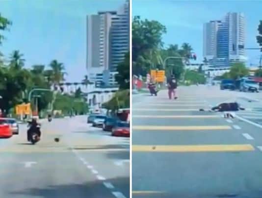 ਅਜਿਹਾ ਹੁੰਦੇ ਹੀ ਔਰਤ ਸਕੂਟੀ (Scooty) ਤੋਂ ਡਿੱਗ ਪਈ ਅਤੇ ਸਿਰ ਤੋਂ ਹੈਲਮੇਟ (Helmet) ਵੀ ਖੁੱਲ੍ਹ ਗਿਆ। ਵੀਡੀਓ ਨੂੰ ਦੇਖ ਕੇ ਯੂਜ਼ਰਸ ਕਾਫੀ ਹੈਰਾਨ ਹੋ ਰਹੇ ਹਨ। ਫਿਲਹਾਲ ਇਸ ਘਟਨਾ ਤੋਂ ਬਾਅਦ ਮਲੇਸ਼ੀਆ ਦੇ ਮੰਤਰੀ ਅਜ਼ਰੂਲ ਮਹਾਥਿਰ ਬਿਨ ਅਜ਼ੀਜ਼ (Malaysian Minister Azrul Mahathir bin Aziz) ਨੇ ਇਸ ਹਾਦਸੇ ਦੀ ਵੀਡੀਓ ਸ਼ੇਅਰ ਕਰਦੇ ਹੋਏ ਅਜਿਹੇ ਹਾਦਸਿਆਂ ਤੋਂ ਬਚਣ ਲਈ ਹਾਈਵੇਅ ਦੇ ਨਾਲ ਨਾਰੀਅਲ ਦੇ ਦਰੱਖਤਾਂ ਨੂੰ ਹਟਾਉਣ ਦੀ ਵੀ ਅਪੀਲ ਕੀਤੀ ਹੈ।