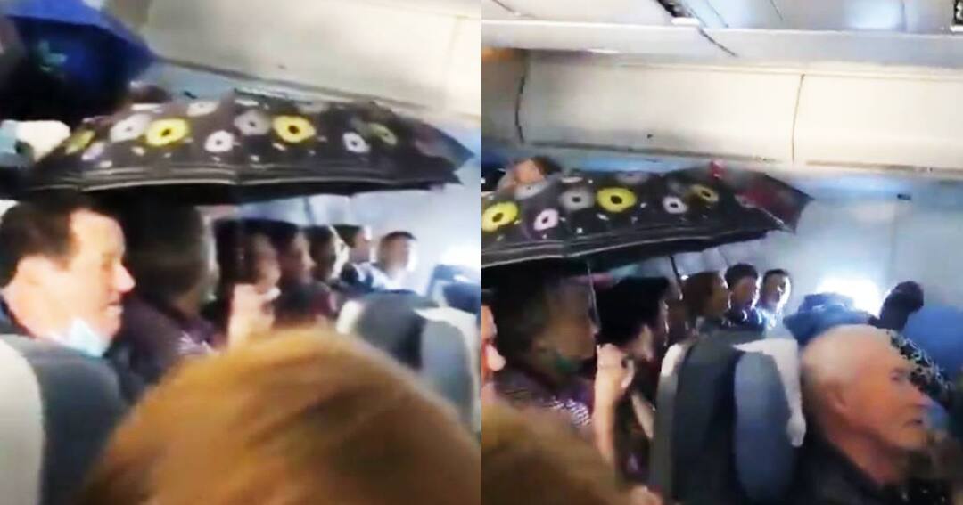 ਕੱਚੇ ਕੋਠੇ ਦੀ ਛੱਤ ਵਾਂਗ ਚੋਣ ਲੱਗਾ ਜਹਾਜ਼ 'ਚੋਂ ਪਾਣੀ, ਲੋਕਾਂ ਨੇ ਖੋਲ੍ਹ ਲਈਆਂ ਛੱਤਰੀਆਂ, ਵੇਖੋ ਕਮਾਲ ਦੀ ਵੀਡੀਓ