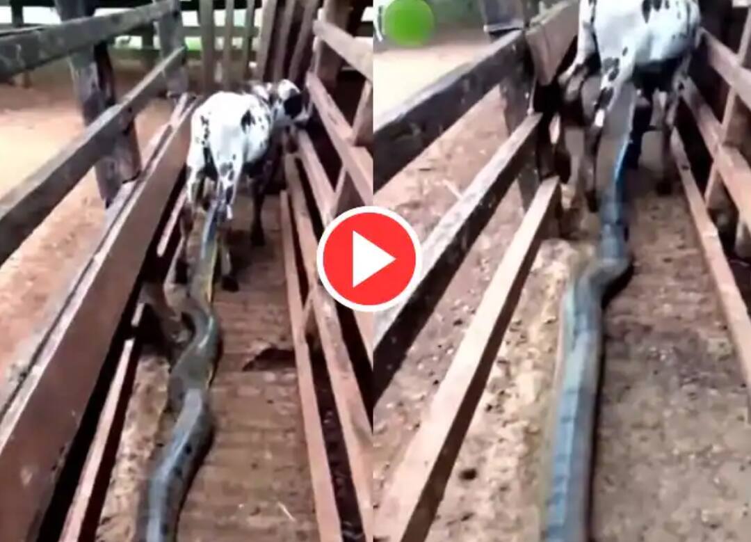 ਵੀਡੀਓ 'ਚ ਦੇਖਿਆ ਜਾ ਸਕਦਾ ਹੈ ਕਿ ਖੁੱਲ੍ਹੇ ਮੈਦਾਨ 'ਚ ਵੱਡੀ ਗਿਣਤੀ 'ਚ ਪਾਲਤੂ ਜਾਨਵਰ ਇਧਰ-ਉਧਰ ਘੁੰਮ ਰਹੇ ਹਨ। ਇਨ੍ਹਾਂ ਵਿੱਚ ਗਾਂ ਦਾ ਇੱਕ ਵੱਛਾ ਵਾੜੇ ਦੀ ਮਦਦ ਨਾਲ ਆਰਾਮ ਕਰਦਾ ਨਜ਼ਰ ਆਉਂਦਾ ਹੈ। ਸ਼ਿਕਾਰ ਦੀ ਭਾਲ ਵਿੱਚ ਇਧਰ-ਉਧਰ ਭਟਕਦੇ ਇੱਕ ਵਿਸ਼ਾਲ ਅਜਗਰ ਨੇ ਉਸ ਨੂੰ ਦੇਖ ਲਿਆ। ਅਜਗਰ ਨੇ ਵੀ ਹੌਲੀ-ਹੌਲੀ ਉਸ ਦੇ ਨੇੜੇ ਆ ਕੇ ਹਮਲਾ ਕਰ ਦਿੱਤਾ। ਸੱਪ ਨੇ ਵੱਛੇ ਦੀ ਗਰਦਨ ਦੇ ਹੇਠਲੇ ਹਿੱਸੇ ਨੂੰ ਆਪਣੇ ਮੂੰਹ ਨਾਲ ਭਰ ਲਿਆ।