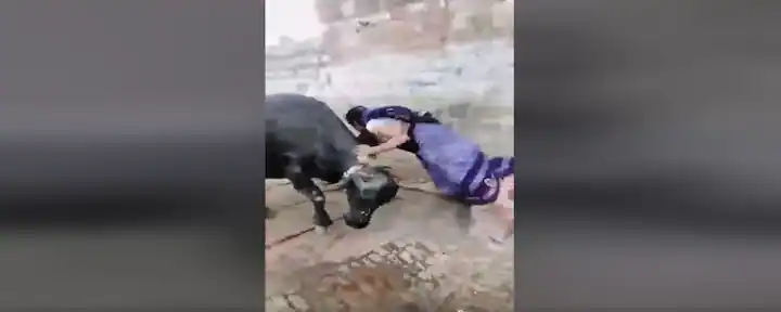 Watch Video: ਅੱਜ ਦੇ ਜ਼ਮਾਨੇ 'ਚ ਮੰਨਿਆ ਜਾਂਦਾ ਹੈ ਕਿ ਦੁਨੀਆ 'ਚ ਹਰ ਕੋਈ ਸਿੱਧੇਪਣ ਦਾ ਫਾਇਦਾ ਚੁੱਕਦਾ ਹੈ। ਇਨਸਾਨ ਹੋਵੇ ਜਾਂ ਜਾਨਵਰ, ਜਾਣਬੁੱਝ ਕੇ ਲੋਕ ਪ੍ਰੇਸ਼ਾਨ ਕਰਨ ਲੱਗ ਜਾਂਦੇ ਹਨ ਪਰ ਬੇਵਜ੍ਹਾ ਪ੍ਰੇਸ਼ਾਨੀ ਕੋਈ ਨਹੀਂ ਸਹਿੰਦਾ। ਇੱਕ ਮਹਿਲਾ ਦਾ ਵੀਡੀਓ ਸੋਸ਼ਲ ਮੀਡੀਆ ਉਪਰ ਵਾਇਰਲ ਹੋ ਰਿਹਾ ਹੈ। ਦਰਅਸਲ ਇਹ ਮਹਿਲਾ ਉਸ ਦੇ ਵਿਹੜੇ 'ਚ ਬੰਨ੍ਹੀ ਹੋਈ ਮੱਝ ਨੂੰ ਪ੍ਰੇਸ਼ਾਨ ਕਰਨ ਦੀ ਕੋਸ਼ਿਸ਼ ਕਰ ਰਹੀ ਹੈ ਪਰ ਮੱਝ ਨੇ ਮਹਿਲਾ ਨੂੰ ਅਜਿਹਾ ਸਬਕ ਸਿਖਾਇਆ ਕਿ ਉਹ ਜ਼ਿੰਦਗੀ ਭਰ ਕਿਸੇ ਨੂੰ ਪ੍ਰੇਸ਼ਾਨ ਕਰਨ ਬਾਰੇ ਨਹੀਂ ਸੋਚੇਗੀ।
