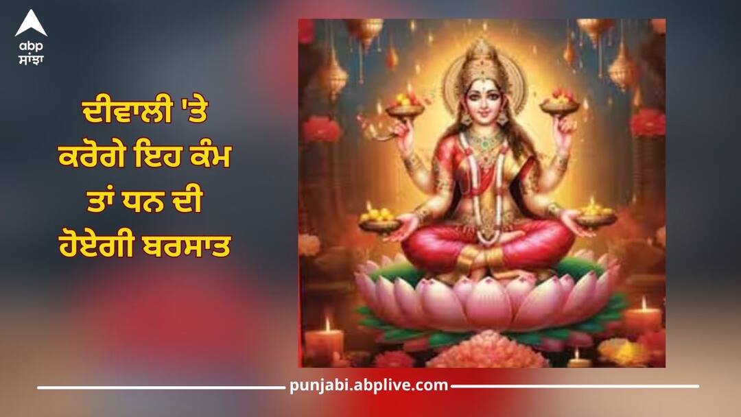 ਦੀਵਾਲੀ ਦੇ ਦਿਨ, ਹਰ ਕੋਈ ਦੇਵੀ ਲਕਸ਼ਮੀ ਦੀ ਪੂਜਾ ਕਰਦਾ ਹੈ ਅਤੇ ਪ੍ਰਾਰਥਨਾ ਕਰਦਾ ਹੈ ਕਿ ਉਹ ਘਰ ਵਿੱਚ ਨਿਵਾਸ ਕਰੇ। ਕਿਉਂਕਿ ਜਿਸ ਘਰ 'ਚ ਧਨ ਦੀ ਦੇਵੀ ਦਾ ਵਾਸ ਹੁੰਦਾ ਹੈ, ਉਸ ਘਰ 'ਚ ਧਨ ਸੰਬੰਧੀ ਸਮੱਸਿਆਵਾਂ ਦੂਰ ਹੋ ਜਾਂਦੀਆਂ ਹਨ। ਜੇਕਰ ਤੁਸੀਂ ਵੀ ਆਰਥਿਕ ਤੌਰ 'ਤੇ ਪਰੇਸ਼ਾਨ ਹੋ ਤਾਂ ਦੀਵਾਲੀ 'ਤੇ ਅੱਜ ਰਾਤ ਲਕਸ਼ਮੀ ਜੀ ਦੀ ਪੂਜਾ ਕਰਨ ਦੇ ਨਾਲ-ਨਾਲ ਕਰੋ ਇਹ ਜੋਤਸ਼ੀ ਉਪਾਅ।