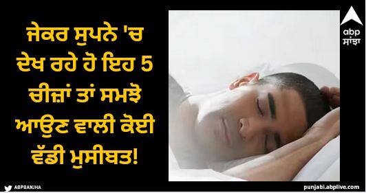 Dream Interpretation: ਹਰ ਕਿਸੇ ਨੂੰ ਸੁਪਨੇ ਆਉਂਦੇ ਹਨ। ਲੋਕ ਆਪਣੇ ਸੁਪਨਿਆਂ ਵਿੱਚ ਵੱਖ-ਵੱਖ ਚੀਜ਼ਾਂ ਦੇਖਦੇ ਹਨ। ਸੁਪਨਿਆਂ ਦੇ ਵਿਗਿਆਨ ਦੇ ਅਨੁਸਾਰ, ਸੁਪਨਿਆਂ ਵਿੱਚ ਦਿਖਾਈ ਦੇਣ ਵਾਲੀਆਂ ਚੀਜ਼ਾਂ ਭਵਿੱਖ ਦੀਆਂ ਘਟਨਾਵਾਂ ਨੂੰ ਦਰਸਾਉਂਦੀਆਂ ਹਨ। ਸੁਪਨੇ ਵਿਗਿਆਨ ਦੇ ਅਨੁਸਾਰ, ਸੁਪਨੇ ਆਉਣ ਵਾਲੇ ਚੰਗੇ ਅਤੇ ਮਾੜੇ ਸਮੇਂ ਨੂੰ ਦਰਸਾਉਂਦੇ ਹਨ। ਜੇਕਰ ਤੁਸੀਂ ਆਪਣੇ ਸੁਪਨੇ 'ਚ ਕੁਝ ਚੀਜ਼ਾਂ ਦੇਖਦੇ ਹੋ ਤਾਂ ਸਮਝ ਲਓ ਕਿ ਬੁਰਾ ਸਮਾਂ ਜਾਂ ਕੋਈ ਮੁਸੀਬਤ ਆਉਣ ਵਾਲੀ ਹੈ। ਅਸੀਂ ਤੁਹਾਨੂੰ ਅਜਿਹੇ ਸੁਪਨਿਆਂ ਬਾਰੇ ਦੱਸਣ ਜਾ ਰਹੇ ਹਾਂ, ਜਿਸ ਬਾਰੇ ਕਿਹਾ ਜਾਂਦਾ ਹੈ ਕਿ ਜਦੋਂ ਅਜਿਹੇ ਸੁਪਨੇ ਆਉਂਦੇ ਹਨ ਤਾਂ ਵਿਅਕਤੀ ਦੀ ਜ਼ਿੰਦਗੀ 'ਚ ਮੁਸ਼ਕਲਾਂ ਆਉਣੀਆਂ ਸ਼ੁਰੂ ਹੋ ਜਾਂਦੀਆਂ ਹਨ।