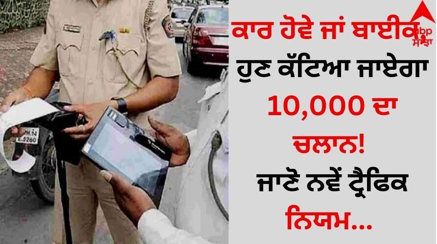 Traffic challan of Rs 10,000: ਦੋਪਹੀਆ, ਤਿੰਨ ਪਹੀਆ ਅਤੇ ਚਾਰ ਪਹੀਆ ਵਾਹਨ ਚਲਾਉਣ ਵਾਲਿਆਂ ਲਈ ਵੱਡੀ ਖਬਰ ਸਾਹਮਣੇ ਆ ਰਹੀ ਹੈ। ਜਿਸ ਤੋਂ ਬਾਅਦ ਲੋਕਾਂ ਨੂੰ ਸਾਵਧਾਨ ਰਹਿਣ ਦੀ ਜ਼ਰੂਰਤ ਹੈ। ਦਰਅਸਲ, ਵਧਦੇ ਪ੍ਰਦੂਸ਼ਣ ਕਾਰਨ ਹੁਣ ਟ੍ਰੈਫਿਕ ਪੁਲਿਸ ਨੇ ਵੱਡਾ ਕਦਮ ਚੁੱਕਦੇ ਹੋਏ ਟ੍ਰੈਫਿਕ ਨਿਯਮਾਂ 'ਚ ਵੱਡਾ ਬਦਲਾਅ ਕੀਤਾ ਹੈ। ਫੜੇ ਜਾਣ 'ਤੇ ਤੁਹਾਨੂੰ 10,000 ਰੁਪਏ ਜੁਰਮਾਨਾ ਹੋ ਸਕਦਾ ਹੈ। ਤੁਹਾਡੀ ਇੱਕ ਛੋਟੀ ਜਿਹੀ ਗਲਤੀ ਤੁਹਾਨੂੰ ਮੁਸੀਬਤ ਵਿੱਚ ਪਾ ਸਕਦੀ ਹੈ। ਆਓ ਜਾਣਦੇ ਹਾਂ ਨਵਾਂ ਨਿਯਮ ਕੀ ਹੈ ਅਤੇ ਅਸੀਂ ਇਸ ਤੋਂ ਕਿਵੇਂ ਬਚ ਸਕਦੇ ਹਾਂ।