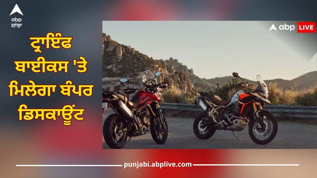Discount on Triumph Bikes: ਟ੍ਰਾਇੰਫ ਬਾਈਕਸ 'ਤੇ ਡਿਸਕਾਊਂਟ ਆਫਰ ਨੂੰ ਇਕ ਮਹੀਨੇ ਹੋਰ ਵਧਾ ਦਿੱਤਾ ਗਿਆ ਹੈ। ਇਸ ਤੋਂ ਪਹਿਲਾਂ ਟ੍ਰਾਇੰਫ ਸਪੀਡ 400 ਅਤੇ ਸਕ੍ਰੈਂਬਲਰ 400 'ਤੇ ਡਿਸਕਾਊਂਟ ਸੀ ਪਰ ਹੁਣ ਇਸ ਆਫਰ ਦੀ ਸਮਾਂ ਸੀਮਾ ਵਧਾ ਕੇ 31 ਅਗਸਤ ਕਰ ਦਿੱਤੀ ਗਈ ਹੈ। ਰਾਇਲ ਐਨਫੀਲਡ ਦੀਆਂ ਇਨ੍ਹਾਂ ਵਿਰੋਧੀ ਬਾਈਕਸ 'ਤੇ 10 ਹਜ਼ਾਰ ਰੁਪਏ ਦੀ ਛੋਟ ਦਿੱਤੀ ਜਾ ਰਹੀ ਹੈ।