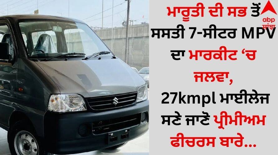 Maruti Eeco 7-Seater: ਅੱਜਕੱਲ੍ਹ ਚਾਰ ਪਹੀਆ ਵਾਹਨ ਲੋਕਾਂ ਦੀ ਪਹਿਲੀ ਪਸੰਦ ਬਣੀ ਹੋਈ ਹੈ। ਇਸ ਤੋਂ ਇਲਾਵਾ ਜ਼ਿਆਦਾਤਰ ਲੋਕ ਆਪਣੇ ਪਰਿਵਾਰ ਨੂੰ ਧਿਆਨ ਵਿੱਚ ਰੱਖਦੇ ਹੋਏ ਹੀ ਕਾਰਾਂ ਦੀ ਖਰੀਦਦਾਰੀ ਕਰਦੇ ਹਨ। ਇਸ ਵਿਚਾਲੇ ਮਾਰੂਤੀ ਦੀ ਸਭ ਤੋਂ ਸਸਤੀ 7-ਸੀਟਰ MPV, ਨੇ ਮਾਰਕੀਟ ਵਿੱਚ ਹਲਚਲ ਮਚਾ ਦਿੱਤੀ ਹੈ। ਇਸ ਵਿੱਚ 27kmpl ਮਾਈਲੇਜ ਦੇ ਨਾਲ ਪ੍ਰੀਮੀਅਮ ਵਿਸ਼ੇਸ਼ਤਾਵਾਂ ਵੀ ਸ਼ਾਮਲ ਹਨ, ਮਾਰੂਤੀ ਆਪਣੀਆਂ ਸਸਤੀਆਂ ਅਤੇ ਸ਼ਕਤੀਸ਼ਾਲੀ ਕਾਰਾਂ ਲਈ ਜਾਣੀ ਜਾਂਦੀ ਹੈ।