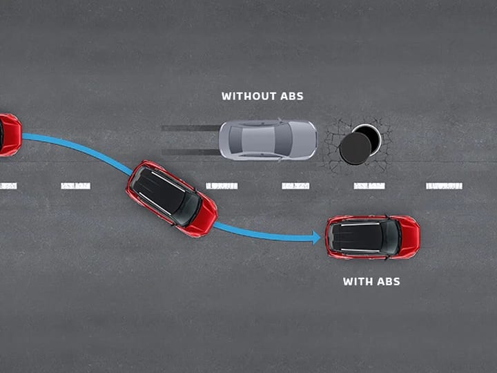 ABS ਨੂੰ Anti-lock Braking System ਦੇ ਨਾਂਅ ਨਾਲ ਜਾਣਿਆ ਜਾਂਦਾ ਹੈ। ਇਹ ਇਕ ਅਜਿਹਾ ਸੇਫਟੀ ਫੀਚਰ ਹੈ ਜੋ ਕਿ ਅਚਾਨਕ ਬ੍ਰੇਕ ਲਾਉਣ 'ਤੇ ਵਾਹਨ ਨੂੰ ਫਿਸਲਣ ਤੋਂ ਬਚਾਉਂਦਾ ਹੈ। ਇਸ ਦੇ ਨਾਲ ਹੀ ਵਾਹਨ ਨੂੰ ਕੰਟਰੋਲ 'ਚ ਰੱਖਦਾ ਹੈ। ਇਸ 'ਚ ਲੱਗੇ ਵਾਲਵ ਤੇ ਸਪੀਡ ਸੈਂਸਰ ਦੀ ਮਦਦ ਨਾਲ ਅਚਾਨਕ ਬ੍ਰੇਕ ਲੱਗਣ 'ਤੇ ਵਾਹਨ ਦੇ ਪਹੀਏ ਲੌਕ ਨਹੀਂ ਹੁੰਦੇ ਤੇ ਬਿਨਾਂ ਸਕਿਡ ਘੱਟ ਦੂਰੀ 'ਚ ਵਾਹਨ ਰੁਕ ਜਾਂਦਾ ਹੈ।