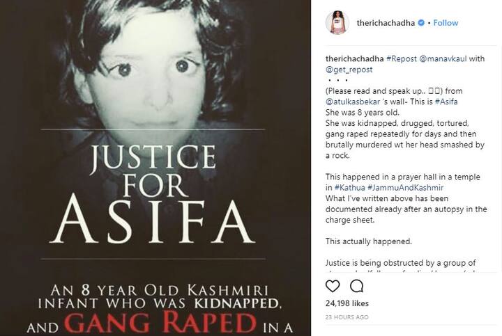 ਗੈਂਗਰੇਪ ਦਾ ਸ਼ਿਕਾਰ ਹੋਈ ਬੱਚੀ ਦੇ ਕਾਤਲਾਂ ਨੂੰ ਸਜ਼ਾ ਦਿਵਾਉਣ ਲਈ ਡਟੇ ਸੈਲੀਬ੍ਰਿਟੀਜ਼