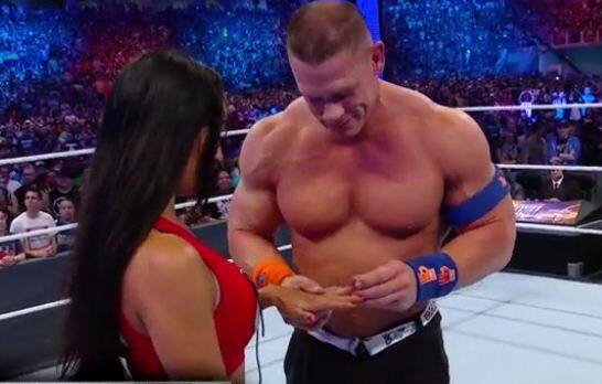 ਰੈਸਲਰ ਜੌਨ ਸੀਨਾ ਨੇ ਆਪਣੀ ਗਰਲਫਰੈਂਡ ਨਿਕੀ ਬੈਲਾ ਨੂੰ ਰਿੰਗ ਵਿੱਚ ਵਿਆਹ ਲਈ ਪ੍ਰਪੋਜ਼ ਕੀਤਾ।