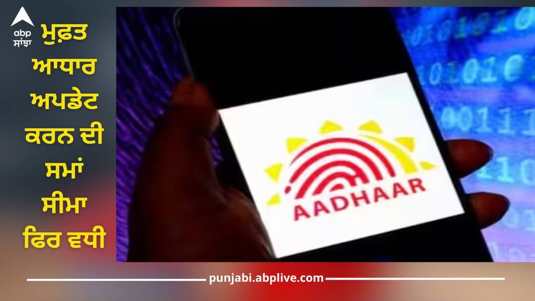 Aadhaar Card Update Deadline Extended: ਆਧਾਰ ਕਾਰਡ ਧਾਰਕਾਂ ਲਈ ਵੱਡੀ ਖਬਰ ਹੈ। ਜੇਕਰ ਤੁਸੀਂ ਅਜੇ ਤੱਕ ਆਧਾਰ ਨੂੰ ਮੁਫਤ 'ਚ ਅਪਡੇਟ ਨਹੀਂ ਕੀਤਾ ਹੈ, ਤਾਂ ਹੁਣ ਤੁਸੀਂ ਭਵਿੱਖ 'ਚ ਵੀ ਇਸ ਸੇਵਾ ਦਾ ਲਾਭ ਲੈ ਸਕਦੇ ਹੋ। ਯੂਨੀਕ ਆਈਡੈਂਟੀਫਿਕੇਸ਼ਨ ਅਥਾਰਟੀ ਆਫ ਇੰਡੀਆ (UIDAI) ਨੇ ਮੁਫਤ ਆਧਾਰ ਅਪਡੇਟ ਕਰਨ ਦੀ ਸਮਾਂ ਸੀਮਾ ਵਧਾ ਦਿੱਤੀ ਹੈ। ਸ਼ਨੀਵਾਰ ਨੂੰ UIDAI ਨੇ ਇਸ ਬਾਰੇ ਜਾਣਕਾਰੀ ਦਿੰਦੇ ਹੋਏ ਸੋਸ਼ਲ ਮੀਡੀਆ ਪਲੇਟਫਾਰਮ X 'ਤੇ ਇਕ ਪੋਸਟ ਸ਼ੇਅਰ ਕੀਤੀ ਹੈ। ਅਜਿਹੀ ਸਥਿਤੀ ਵਿੱਚ ਉਪਭੋਗਤਾਵਾਂ ਨੂੰ ਭਵਿੱਖ ਵਿੱਚ ਵੀ ਮੁਫਤ ਆਧਾਰ ਅਪਡੇਟ ਸੇਵਾ ਮਿਲਦੀ ਰਹੇਗੀ।