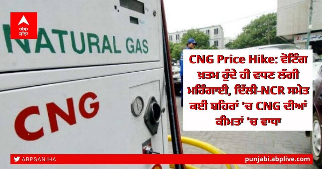 CNG Price Hike: ਉੱਤਰ ਪ੍ਰਦੇਸ਼ ਸਮੇਤ ਪੰਜ ਸੂਬਿਆਂ ਦੀਆਂ ਵਿਧਾਨ ਸਭਾ ਚੋਣਾਂ ਵਿੱਚ ਵੋਟਿੰਗ ਖ਼ਤਮ ਹੁੰਦੇ ਹੀ ਮਹਿੰਗਾਈ ਵਧਣੀ ਸ਼ੁਰੂ ਹੋ ਗਈ ਹੈ। ਦਿੱਲੀ-ਐਨਸੀਆਰ ਸਮੇਤ ਕਈ ਸ਼ਹਿਰਾਂ ਵਿੱਚ ਸੀਐਨਜੀ ਦੀਆਂ ਕੀਮਤਾਂ ਵਿੱਚ 50 ਪੈਸੇ ਦਾ ਵਾਧਾ 1 ਰੁਪਏ ਪ੍ਰਤੀ ਕਿਲੋਗ੍ਰਾਮ ਹੋ ਗਿਆ ਹੈ। ਨਵੀਆਂ ਕੀਮਤਾਂ ਮੰਗਲਵਾਰ ਸਵੇਰੇ 6 ਵਜੇ ਤੋਂ ਲਾਗੂ ਹੋਣਗੀਆਂ।