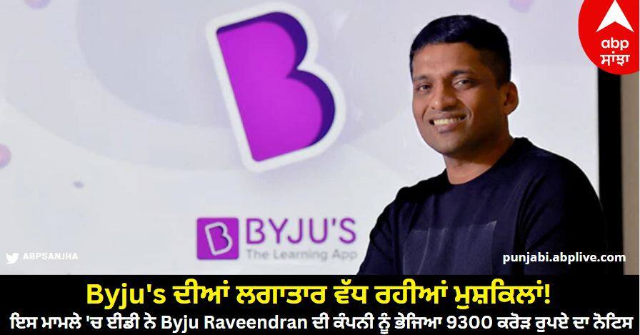 ED Notice to Byju's: ਐਡਟੈਕ ਸੈਕਟਰ ਦੀ ਸਟਾਰਟਅਪ ਕੰਪਨੀ ਬਾਈਜੂ (Byju's, a startup company in the edtech sector) ਦੀਆਂ ਮੁਸ਼ਕਲਾਂ ਖਤਮ ਹੋਣ ਦੇ ਕੋਈ ਸੰਕੇਤ ਨਹੀਂ ਦਿਖ ਰਹੇ ਹਨ। ਹੁਣ ਕੰਪਨੀ ਨੂੰ ਲੈ ਕੇ ਇੱਕ ਵੱਡੀ ਖਬਰ ਸਾਹਮਣੇ ਆਈ ਹੈ। ਇਨਫੋਰਸਮੈਂਟ ਡਾਇਰੈਕਟੋਰੇਟ (ED) ਨੇ 9362.35 ਕਰੋੜ ਰੁਪਏ ਦੇ ਮਾਮਲੇ ਵਿੱਚ ਕੰਪਨੀ ਨੂੰ ਕਾਰਨ ਦੱਸੋ ਨੋਟਿਸ ਜਾਰੀ ਕੀਤਾ ਹੈ। ਈਡੀ ਨੇ ਕੰਪਨੀ ਨੂੰ ਇਹ ਨੋਟਿਸ ਵਿਦੇਸ਼ੀ ਫੰਡ (Foreign Exchange Management Act) ਨਾਲ ਜੁੜੇ ਮਾਮਲੇ ਵਿੱਚ ਜਾਰੀ ਕੀਤਾ ਹੈ।