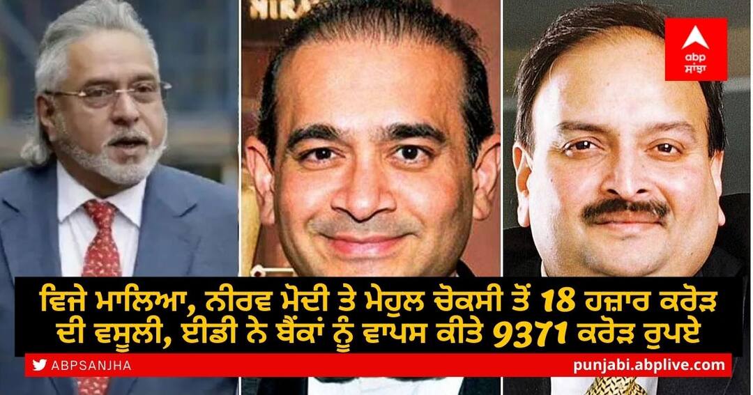 ਇਨਫੋਰਸਮੈਂਟ ਡਾਇਰੈਕਟੋਰੇਟ ਨੇ ਕਿਹਾ, “PMLA ਅਧੀਨ ਵਿਜੇ ਮਾਲਿਆ, ਨੀਰਵ ਮੋਦੀ ਤੇ ਮੇਹੁਲ ਚੋਕਸੀ ਦੇ ਮਾਮਲੇ ਵਿੱਚ ਨਾ ਸਿਰਫ 18,170.02 ਕਰੋੜ ਰੁਪਏ ਦੀ ਜਾਇਦਾਦ ਜ਼ਬਤ ਕੀਤੀ ਸੀ, ਸਗੋਂ 9371.17 ਕਰੋੜ ਰੁਪਏ ਜ਼ਬਤ ਕੀਤੀ ਜਾਇਦਾਦ ਦਾ ਇੱਕ ਹਿੱਸਾ ਵੀ ਪੀਐਸਬੀ ਤੇ ਕੇਂਦਰੀ ਸਰਕਾਰ ਨੂੰ ਵੀ ਦਿੱਤਾ ਗਿਆ।'