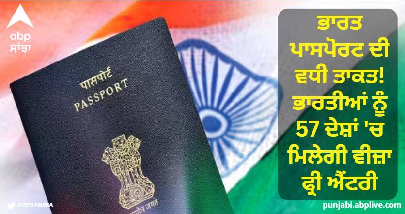 ਭਾਰਤੀ ਪਾਸਪੋਰਟ ਨੇ ਇਸ ਸਾਲ ਆਪਣੀ ਰੈਂਕਿੰਗ ਵਿੱਚ ਪੰਜ ਸਥਾਨਾਂ ਦਾ ਸੁਧਾਰ ਕੀਤਾ ਹੈ ਅਤੇ 80ਵੇਂ ਸਥਾਨ 'ਤੇ ਪਹੁੰਚ ਗਿਆ ਹੈ। ਇਸ ਨਾਲ ਹੀ ਭਾਰਤੀਆਂ ਨੂੰ ਦੁਨੀਆ ਦੇ 57 ਦੇਸ਼ਾਂ ਵਿੱਚ ਵੀਜ਼ਾ ਫ੍ਰੀ ਐਂਟਰੀ ਮਿਲ ਰਹੀ ਹੈ। ਦੱਸਣਯੋਗ ਹੈ ਕਿ ਭਾਰਤ ਦੇ ਨਾਲ-ਨਾਲ 80ਵੇਂ ਸਥਾਨ 'ਤੇ ਇਸ ਸੂਚੀ 'ਚ ਟੋਗੋ ਤੇ ਸੇਨੇਗਲ ਵਰਗੇ ਦੇਸ਼ਾਂ ਦੇ ਨਾਂ ਵੀ ਸ਼ਾਮਲ ਹਨ।