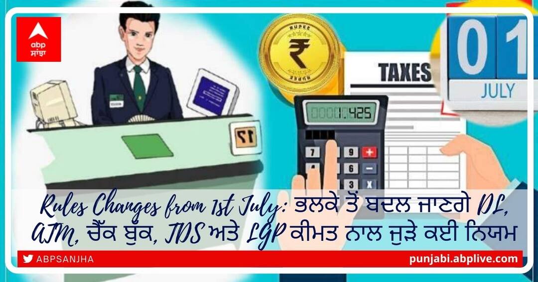 ਨਵੀਂ ਦਿੱਲੀ: ਆਮ ਆਦਮੀ ਦੀ ਜ਼ਿੰਦਗੀ ਨਾਲ ਜੁੜੇ ਬਹੁਤ ਸਾਰੇ ਨਿਯਮ ਜੁਲਾਈ ਦੇ ਇਸ ਮਹੀਨੇ ਵਿਚ ਵੀ ਬਦਲਣ ਜਾ ਰਹੇ ਹਨ। ਜੋ ਸਿੱਧੇ ਤੌਰ 'ਤੇ ਤੁਹਾਡੀ ਜੇਬ ਹੀ ਨਹੀਂ ਬਲਕਿ ਰਸੋਈ ਨੂੰ ਵੀ ਪ੍ਰਭਾਵਿਤ ਕਰ ਸਕਦੇ ਹਨ। ਐਸਬੀਆਈ ਦੇ ਏਟੀਐਮ ਜਾਂ ਸ਼ਾਖਾ ਤੋਂ ਪੈਸੇ ਕੱਢਵਾਉਣਾ, ਚੈੱਕ, ਟ੍ਰਾਂਜੈਕਸ਼ਨ, ਡਰਾਈਵਿੰਗ ਲਾਇਸੈਂਸ, ਇਨਕਮ ਟੈਕਸ ਟੀਡੀਐਸ, ਗੈਸ ਸਿਲੰਡਰ ਦੀ ਕੀਮਤ ਸਮੇਤ ਕਈ ਅਜਿਹੇ ਨਿਯਮ ਬਦਲਣ ਜਾ ਰਹੇ ਹਨ। ਆਓ ਤੁਹਾਨੂੰ ਇਨ੍ਹਾਂ ਬਾਰੇ ਦੱਸੀਏ ...