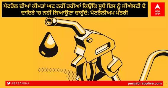 ਕੋਲਕਾਤਾ: ਪੈਟਰੋਲ ਤੇ ਡੀਜ਼ਲ ਦੀਆਂ ਵਧੀਆਂ ਕੀਮਤਾਂ ਨੇ ਆਮ ਲੋਕਾਂ ਦੀ ਕਮਰ ਤੋੜ ਦਿੱਤੀ ਹੈ। ਇਹ ਕੀਮਤ ਹੇਠਾਂ ਕਿਉਂ ਨਹੀਂ ਆ ਰਹੀ? ਪੈਟਰੋਲੀਅਮ ਮੰਤਰੀ ਹਰਦੀਪ ਸਿੰਘ ਪੁਰੀ ਨੇ ਇਸ ਦਾ ਕਾਰਨ ਦੱਸਿਆ ਹੈ। ਪੈਟਰੋਲੀਅਮ ਮੰਤਰੀ ਨੇ ਕਿਹਾ ਕਿ ਦੇਸ਼ ਵਿੱਚ ਪੈਟਰੋਲ ਤੇ ਡੀਜ਼ਲ ਦੀਆਂ ਕੀਮਤਾਂ ਘੱਟ ਨਹੀਂ ਹੋ ਰਹੀਆਂ ਕਿਉਂਕਿ ਸੂਬੇ ਨੂੰ ਜੀਐਸਟੀ ਦੇ ਦਾਇਰੇ 'ਚ ਨਹੀਂ ਲਿਆਉਣਾ ਚਾਹੁੰਦੇ।