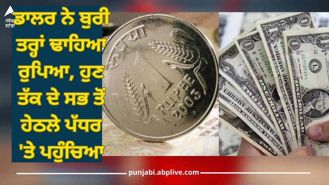 Rupee All Time Low: ਭਾਰਤੀ ਕਰੰਸੀ ਰੁਪਏ ਦੀ ਕੀਮਤ ਵਿੱਚ ਲਗਾਤਾਰ ਗਿਰਾਵਟ ਜਾਰੀ ਹੈ। ਸੋਮਵਾਰ ਨੂੰ ਅੰਤਰਬੈਂਕਿੰਗ ਮੁਦਰਾ ਬਾਜ਼ਾਰ 'ਚ ਰੁਪਏ ਦੀ ਕੀਮਤ 'ਚ ਇੱਕ ਵਾਰ ਫਿਰ ਗਿਰਾਵਟ ਦਰਜ ਕੀਤੀ ਗਈ। ਇਸ ਨਾਲ ਭਾਰਤੀ ਕਰੰਸੀ ਆਪਣੇ ਜੀਵਨ ਕਾਲ ਦੇ ਹੇਠਲੇ ਪੱਧਰ 'ਤੇ ਆ ਗਈ। ਇਹ ਗਿਰਾਵਟ ਅਜਿਹੇ ਸਮੇਂ 'ਚ ਆਈ ਹੈ ਜਦੋਂ ਸੋਮਵਾਰ ਦੇ ਕਾਰੋਬਾਰ 'ਚ ਘਰੇਲੂ ਸ਼ੇਅਰ ਬਾਜ਼ਾਰ 'ਚ ਵੀ ਗਿਰਾਵਟ ਦੇਖਣ ਨੂੰ ਮਿਲੀ।