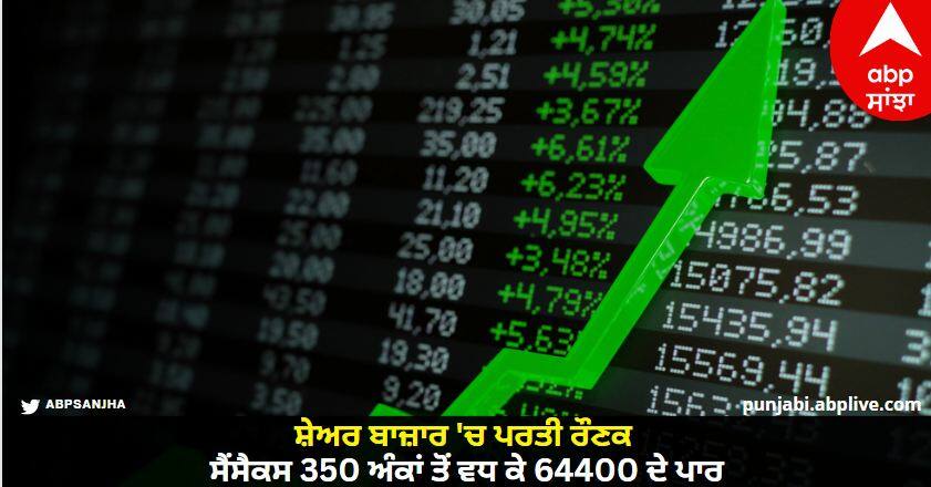 Stock Market Opening: ਅੱਜ ਸ਼ੇਅਰ ਬਾਜ਼ਾਰ ਦੀ ਸ਼ੁਰੂਆਤ 'ਚ BSE ਸੈਂਸੈਕਸ 364 ਅੰਕ ਜਾਂ 0.57 ਫੀਸਦੀ ਦੇ ਵਾਧੇ ਨਾਲ 64,444 ਦੇ ਪੱਧਰ 'ਤੇ ਖੁੱਲ੍ਹਿਆ। ਉਥੇ ਹੀ NSE ਦਾ ਨਿਫਟੀ 107.75 ਅੰਕ ਜਾਂ 0.56 ਫੀਸਦੀ ਦੇ ਵਾਧੇ ਨਾਲ 19,241 ਦੇ ਪੱਧਰ 'ਤੇ ਖੁੱਲ੍ਹਿਆ ਹੈ।