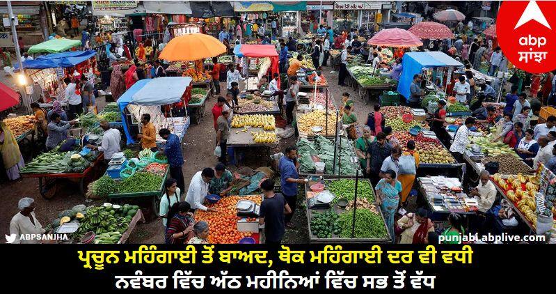 WPI Inflation November 2023: ਪ੍ਰਚੂਨ ਮਹਿੰਗਾਈ ਤੋਂ ਬਾਅਦ ਹੁਣ ਥੋਕ ਮਹਿੰਗਾਈ ਦਰ ਵਿੱਚ ਵੀ ਵਾਧਾ ਹੋਇਆ ਹੈ। ਵੀਰਵਾਰ ਨੂੰ ਜਾਰੀ ਅਧਿਕਾਰਤ ਅੰਕੜਿਆਂ ਮੁਤਾਬਕ ਨਵੰਬਰ 'ਚ ਥੋਕ ਮਹਿੰਗਾਈ ਦਰ 0.26 ਫੀਸਦੀ ਰਹੀ, ਜੋ ਪਿਛਲੇ 8 ਮਹੀਨਿਆਂ 'ਚ ਸਭ ਤੋਂ ਵੱਧ ਹੈ। ਇਸ ਤੋਂ ਪਹਿਲਾਂ ਥੋਕ ਮਹਿੰਗਾਈ ਦਰ ਲਗਾਤਾਰ 7 ਮਹੀਨਿਆਂ ਤੱਕ ਜ਼ੀਰੋ ਤੋਂ ਹੇਠਾਂ ਰਹੀ ਸੀ।