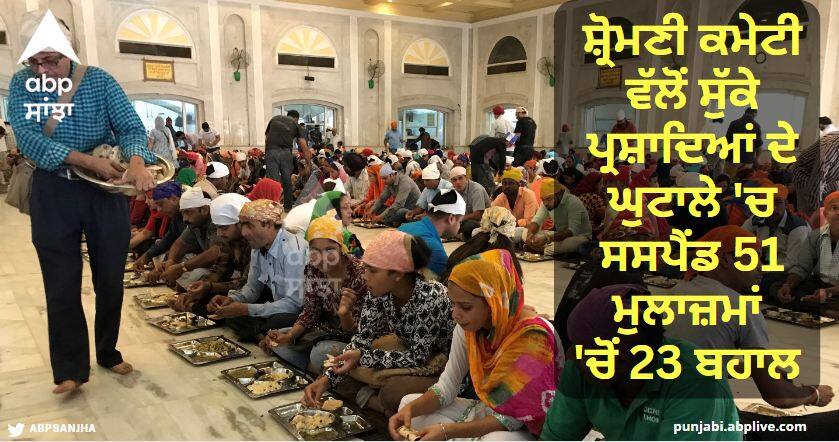 Amritsar News: ਸ੍ਰੀ ਦਰਬਾਰ ਸਾਹਿਬ ਵਿਖੇ ਗੁਰੂ ਰਾਮਦਾਸ ਲੰਗਰ ਘਰ ਵਿੱਚ ਸੁੱਕੇ ਪ੍ਰਸ਼ਾਦਿਆਂ ਦੇ ਘਪਲੇ ਮਾਮਲੇ ਵਿੱਚ ਸ਼੍ਰੋਮਣੀ ਗੁਰਦੁਆਰਾ ਪ੍ਰਬੰਧਕ ਕਮੇਟੀ ਵੱਲੋਂ ਮੁਅੱਤਲ ਕੀਤੇ ਗਏ 51 ਮੁਲਾਜ਼ਮਾਂ ਵਿੱਚੋਂ 23 ਮੁਲਾਜ਼ਮਾਂ ਦੀਆਂ ਸੇਵਾਵਾਂ ਬਹਾਲ ਹੋ ਗਈਆਂ ਹਨ। ਇਹ ਮੁਲਾਜ਼ਮ ਲਗਪਗ ਇੱਕ ਕਰੋੜ ਦੇ ਘਪਲੇ ਦੇ ਦੋਸ਼ ਹੇਠ ਮੁਅੱਤਲ ਕੀਤੇ ਗਏ ਸਨ। ਸ਼੍ਰੋਮਣੀ ਕਮੇਟੀ ਦੇ ਜਨਰਲ ਸਕੱਤਰ ਗੁਰਚਰਨ ਸਿੰਘ ਗਰੇਵਾਲ ਨੇ ਮੁਅੱਤਲ ਕੀਤੇ ਗਏ ਮੁਲਾਜ਼ਮਾਂ ਵਿੱਚੋਂ 23 ਜਣਿਆਂ ਦੀਆਂ ਸੇਵਾਵਾਂ ਬਹਾਲ ਕਰਨ ਦੀ ਪੁਸ਼ਟੀ ਕੀਤੀ ਹੈ।