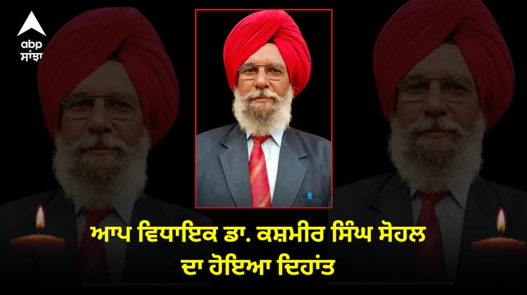 Punjab News: ਆਮ ਆਦਮੀ ਪਾਰਟੀ ਦੇ ਤਰਨਤਾਰਨ ਤੋਂ ਵਿਧਾਇਕ ਡਾ. ਕਸ਼ਮੀਰ ਸਿੰਘ ਸੋਹਲ ਦਾ ਦਿਹਾਂਤ ਹੋ ਗਿਆ ਹੈ ਜਿਸ ਤੋਂ ਪੰਜਾਬ ਦੇ ਮੁੱਖ ਮੰਤਰੀ ਭਗਵੰਤ ਸਿੰਘ ਮਾਨ ਨੇ ਦੁੱਖ ਦਾ ਪ੍ਰਗਟਾਵਾ ਕੀਤਾ ਹੈ। ਮੁੱਖ ਮੰਤਰੀ ਨੇ ਕਿਹਾ ਕਿ ਪਰਮਾਤਮਾ ਵਿੱਛੜੀ ਰੂਹ ਨੂੰ ਆਪਣੇ ਚਰਨਾਂ 'ਚ ਨਿਵਾਸ ਦੇਣ। ਪਰਿਵਾਰ ਸਮੇਤ ਚਾਹੁਣ ਵਾਲਿਆਂ ਨੂੰ ਭਾਣਾ ਮੰਨਣ ਦਾ ਹੌਸਲਾ-ਹਿੰਮਤ ਬਖ਼ਸ਼ਣ।