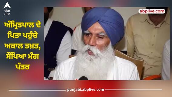 Amritpal's father: ਖਡੂਰ ਸਾਹਿਬ ਤੋਂ ਸੰਸਦ ਮੈਂਬਰ ਅਤੇ ਖਾਲਿਸਤਾਨ ਸਮਰਥਕ ਅੰਮ੍ਰਿਤਪਾਲ ਸਿੰਘ ਦੇ ਪਿਤਾ ਤਰਸੇਮ ਸਿੰਘ (Tarsem Singh) ਮੰਗਲਵਾਰ ਯਾਨੀਕਿ ਅੱਜ ਸ੍ਰੀ ਅਕਾਲ ਤਖ਼ਤ ਸਾਹਿਬ ਪਹੁੰਚੇ ਅਤੇ ਮੰਗ ਪੱਤਰ ਸੌਂਪਿਆ। ਤਰਸੇਮ ਸਿੰਘ ਨੇ ਮੀਡੀਆ ਨੂੰ ਦੱਸਿਆ ਕਿ ਉਹ 30 ਅਗਸਤ ਨੂੰ 5 ਤਖ਼ਤਾਂ ਦੇ ਜਥੇਦਾਰਾਂ ਦੀ ਹੋਣ ਵਾਲੀ ਮੀਟਿੰਗ ਦੇ ਸਬੰਧ ਵਿੱਚ ਗਏ ਸਨ। ਇਸ ਦੇ ਨਾਲ ਹੀ ਉਨ੍ਹਾਂ ਨੇ ਅਕਾਲੀ ਦਲ ਅੰਦਰ ਚੱਲ ਰਹੇ ਕਲੇਸ਼ ਨੂੰ ਲੈ ਕੇ ਸੁਖਬੀਰ ਬਾਦਲ 'ਤੇ ਵੀ ਤੰਜ਼ ਕੱਸਿਆ।