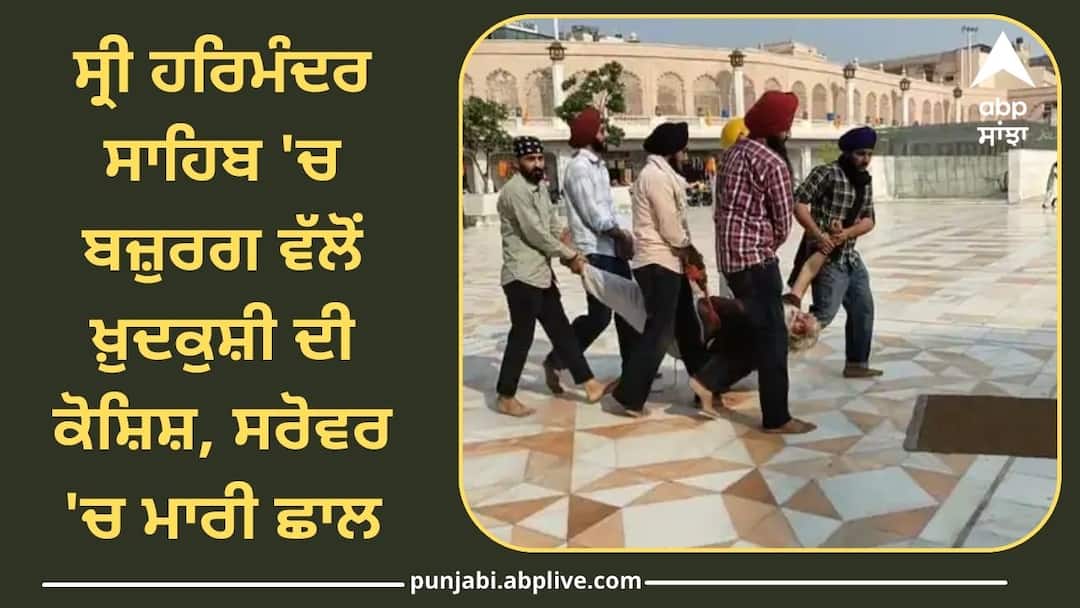 Punjab News: ਸ਼੍ਰੀ ਗੁਰੂ ਰਾਮਦਾਸ ਜੀ ਦੇ ਪ੍ਰਕਾਸ਼ ਪੁਰਬ 'ਤੇ ਹਰਿਮੰਦਰ ਸਾਹਿਬ ਵਿਖੇ ਇੱਕ ਸ਼ਰਧਾਲੂ ਨੇ ਆਤਮਹੱਤਿਆ ਦੀ ਕੋਸ਼ਿਸ਼ ਕੀਤੀ। ਬਜ਼ੁਰਗ ਨੇ ਸਰੋਵਰ ਵਿੱਚ ਛਾਲ ਮਾਰ ਦਿੱਤੀ ਜਿਸ ਨੂੰ ਟਾਸਕ ਫੋਰਸ ਅਤੇ ਸ਼੍ਰੋਮਣੀ ਕਮੇਟੀ ਮੁਲਾਜ਼ਮਾਂ ਨੇ ਮੁਸਤੈਦੀ ਦਿਖਾਉਂਦੇ ਹੋਏ ਬਚਾਇਆ। ਫਿਲਹਾਲ ਬਜ਼ੁਰਗ ਵਿਅਕਤੀ ਨੂੰ ਹਸਪਤਾਲ ਦਾਖ਼ਲ ਕਰਵਾਇਆ ਗਿਆ ਹੈ।
