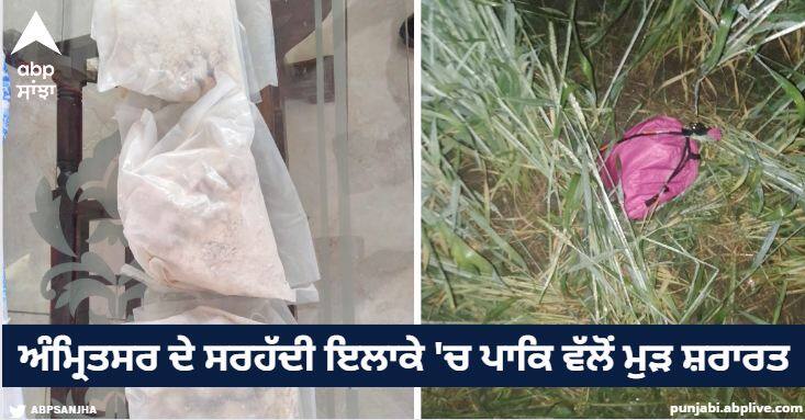 Amritsar News: ਸ਼ਨੀਵਾਰ ਤੜਕਸਾਰ ਅੰਮ੍ਰਿਤਸਰ ਦੇ ਅਟਾਰੀ ਸਰਹੱਦ ਦੇ ਨਜਦੀਕ ਪਿੰਡ ਧਨੋਏ ਤੋਂ ਹੈਰੋਇਨ ਬਰਾਮਦ ਕੀਤੀ ਗਈ। ਬੀਐਸਐਫ ਦੇ ਅਧਿਕਾਰੀਆਂ ਨੇ ਜਾਣਕਾਰੀ ਦਿੰਦੇ ਹੋਏ ਦੱਸਿਆ ਕਿ ਸਰਹੱਦ 'ਤੇ ਤਾਇਨਾਤ ਸੀਮਾ ਸੁਰੱਖਿਆ ਬਲ ਦੇ ਜਵਾਨਾਂ ਨੇ ਜ਼ਿਲ੍ਹਾ ਅੰਮ੍ਰਿਤਸਰ ਦੇ ਪਿੰਡ ਧਨੋਏ ਕਲਾਂ ਦੇ ਨੇੜੇ ਦੇ ਖੇਤਰ ਵਿੱਚ ਪਾਕਿਸਤਾਨ ਤੋਂ ਭਾਰਤੀ ਖੇਤਰ ਵਿੱਚ ਇੱਕ ਸ਼ੱਕੀ ਉਡਾਣ ਵਾਲੀ ਵਸਤੂ (ਡਰੋਨ) ਦੇ ਦਾਖਲ ਹੋਣ ਦੀ ਗੂੰਜਦੀ ਆਵਾਜ਼ ਸੁਣੀ।