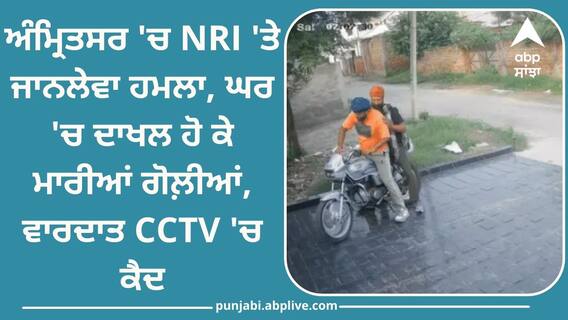 Punjab News: ਅੰਮ੍ਰਿਤਸਰ 'ਚ ਇੱਕ NRI ਨੂੰ ਘਰ ਵਿੱਚ ਵੜ ਕੇ ਗੋਲੀ ਮਾਰਨ ਦਾ ਮਾਮਲਾ ਸਾਹਮਣੇ ਆਇਆ ਹੈ। ਅੱਜ ਸਵੇਰੇ 7.30 ਵਜੇ ਦੇ ਕਰੀਬ ਦੋ ਨੌਜਵਾਨ ਅੰਮ੍ਰਿਤਸਰ ਦੇ ਦਬੁਰਜੀ ਦੇ ਘਰ ਵਿੱਚ ਦਾਖਲ ਹੋਏ ਅਤੇ ਪਰਿਵਾਰ ਦੇ ਸਾਹਮਣੇ ਗੋਲੀਆਂ ਚਲਾ ਦਿੱਤੀਆਂ। ਫਿਲਹਾਲ ਪੀੜਤ ਜ਼ਖਮੀ ਹੈ ਤੇ ਉਸ ਨੂੰ ਹਸਪਤਾਲ 'ਚ ਭਰਤੀ ਕਰਵਾਇਆ ਗਿਆ ਹੈ। ਘਟਨਾ ਘਰ ਵਿੱਚ ਲੱਗੇ ਸੀਸੀਟੀਵੀ ਵਿੱਚ ਕੈਦ ਹੋ ਗਈ। ਮੌਕੇ 'ਤੇ ਪਹੁੰਚੀ ਪੁਲਿਸ ਨੇ ਸੀਸੀਟੀਵੀ ਕੈਮਰੇ ਨੂੰ ਕਬਜ਼ੇ 'ਚ ਲੈ ਕੇ ਜਾਂਚ ਸ਼ੁਰੂ ਕਰ ਦਿੱਤੀ ਹੈ।