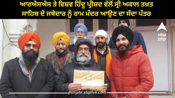 Amritsar News: ਆਰਐਸਐਸ ਤੇ ਵਿਸ਼ਵ ਹਿੰਦੂ ਪ੍ਰੀਸ਼ਦ ਦੇ ਨੁਮਾਇੰਦੇ ਸ੍ਰੀ ਅਕਾਲ ਤਖ਼ਤ ਸਾਹਿਬ ਦੇ ਜਥੇਦਾਰ ਗਿਆਨੀ ਰਘਬੀਰ ਸਿੰਘ ਨੂੰ ਅਯੁੱਧਿਆ ਦੇ ਰਾਮ ਮੰਦਰ ਪਹੁੰਚਣ ਦਾ ਸੱਦਾ ਦੇਣ ਲਈ ਆਏ। ਉਨ੍ਹਾਂ ਨੇ ਰਾਮ ਮੰਦਿਰ ਵਿੱਚ ਸ੍ਰੀ ਰਾਮ ਜੀ ਦੀ ਪ੍ਰਾਣ ਪ੍ਰਤਿੱਸ਼ਠਾ ਲਈ ਸ੍ਰੀ ਅਕਾਲ ਤਖ਼ਤ ਦੇ ਜਥੇਦਾਰ ਨੂੰ ਸੱਦਾ ਪੱਤਰ ਸੌਂਪਿਆ ਹੈ।