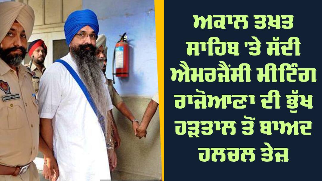 Balwant Singh Rajoana Case: ਪਟਿਆਲਾ ਦੀ ਕੇਂਦਰੀ ਜੇਲ੍ਹ ਵਿੱਚ ਫਾਂਸੀ ਦੀ ਸਜ਼ਾ ਦਾ ਸਾਹਮਣਾ ਕਰ ਰਹੇ ਬਲਵੰਤ ਸਿੰਘ ਰਾਜੋਆਣਾ ਦੀ ਭੁੱਖ ਹੜਤਾਲ ਦਾ ਅੱਜ ਦੂਸਰਾ ਦਿਨ ਹੈ। ਜਿਸ ਨੂੰ ਦੇਖਦੇ ਹੋਏ ਸ਼੍ਰੀ ਅਕਾਲ ਤਖ਼ਤ ਦੇ ਜਥੇਦਾਰ ਗਿਆਨੀ ਰਘਬੀਰ ਸਿੰਘ ਨੇ ਅੱਜ ਐਮਰਜੈਂਸੀ ਮੀਟਿੰਗ ਸੱਦ ਲਈ ਹੈ। ਇਹ ਮੀਟਿੰਗ ਸਵੇਰੇ 11 ਵਜੇ ਦੇ ਕਰੀਬ ਸ਼ੁਰੂ ਹੋਵੇਗੀ। ਜਿਸ ਵਿੱਚ ਪੰਜਾਂ ਤਖ਼ਤਾਂ ਦੇ ਜਥੇਦਾਰਾਂ ਨੂੰ ਸ਼ਾਮਲ ਹੋਣ ਲਈ ਕਿਹਾ ਗਿਆ ਹੈ।
