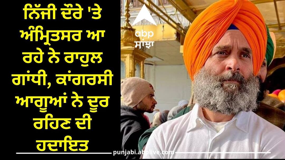 Rahul Gandhi: ਕਾਂਗਰਸ ਨੇਤਾ ਰਾਹੁਲ ਗਾਂਧੀ ਅੱਜ ਅੰਮ੍ਰਿਤਸਰ ਆ ਰਹੇ ਹਨ। ਉਹ ਨਿੱਜੀ ਦੌਰੇ 'ਤੇ ਗੁਰੂਨਗਰੀ ਪਹੁੰਚਣਗੇ। ਉਹ ਸੋਮਵਾਰ ਸਵੇਰੇ ਚੰਡੀਗੜ੍ਹ ਏਅਰਪੋਰਟ ਪਹੁੰਚੇ। ਜ਼ਿਲ੍ਹਾ ਕਾਂਗਰਸ ਪਾਰਟੀ ਦੇ ਪ੍ਰਧਾਨ ਅਸ਼ਵਨੀ ਕੁਮਾਰ ਪੱਪੂ ਨੇ ਦੱਸਿਆ ਕਿ ਰਾਹੁਲ ਗਾਂਧੀ ਦੀ ਵੀ ਸ੍ਰੀ ਹਰਿਮੰਦਰ ਸਾਹਿਬ ਦੇ ਦਰਸ਼ਨਾਂ ਦੀ ਯੋਜਨਾ ਹੈ। ਪੱਪੂ ਨੇ ਕਿਹਾ ਕਿ ਪਾਰਟੀ ਵੱਲੋਂ ਹਦਾਇਤਾਂ ਹਨ ਕਿ ਰਾਹੁਲ ਗਾਂਧੀ ਦੇ ਨਿੱਜੀ ਪ੍ਰੋਗਰਾਮ ਵਿੱਚ ਕੋਈ ਵੀ ਆਗੂ ਹਾਜ਼ਰ ਨਾ ਹੋਵੇ। ਇਸ ਲਈ ਪਾਰਟੀ ਦਾ ਕੋਈ ਵੀ ਆਗੂ ਰਾਹੁਲ ਗਾਂਧੀ ਦੇ ਨਿੱਜੀ ਪ੍ਰੋਗਰਾਮ ਵਿੱਚ ਹਿੱਸਾ ਨਹੀਂ ਲਵੇਗਾ।