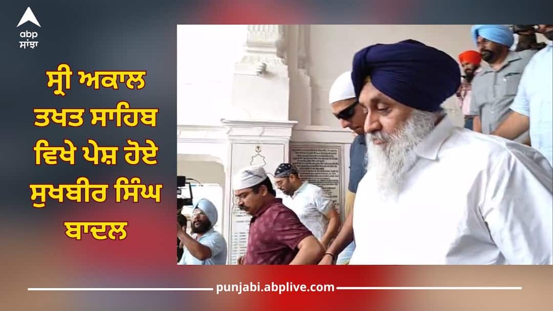 Punjab News: ਸ੍ਰੀ ਅਕਾਲ ਤਖਤ ਸਾਹਿਬ ਵਿਖੇ ਹੋਈ ਪੰਜ ਤਖਤਾਂ ਦੇ ਜਥੇਦਾਰਾਂ ਦੀ ਮੀਟਿੰਗ ਤੋਂ ਬਾਅਦ ਅਕਾਲੀ ਦਲ ਦੇ ਪ੍ਰਧਾਨ ਨੂੰ ਸ੍ਰੀ ਅਕਾਲ ਤਖ਼ਤ ਸਾਹਿਬ ਵਿਖੇ ਪੇਸ਼ ਹੋ ਕੇ ਆਪਣਾ ਪੱਖ ਰੱਖਣ ਲਈ ਕਿਹਾ ਗਿਆ ਸੀ । ਜਿਸ ਤੋਂ ਬਾਅਦ ਅੱਜ ਸੁਖਬੀਰ ਬਾਦਲ ਸ੍ਰੀ ਅੰਮ੍ਰਿਤਸਰ ਸਾਹਿਬ ਵਿਖੇ ਪਹੁੰਚੇ ਅਤੇ ਸ੍ਰੀ ਅਕਾਲ ਤਖ਼ਤ ਵਿਖੇ ਪੇਸ਼ ਹੋਏ। ਜਿੱਥੇ ਉਨ੍ਹਾਂ ਨੇ ਬੰਦ ਲਿਫਾਫੇ 'ਚ ਆਪਣਾ ਜਵਾਬ ਸੌਂਪਿਆ। ਇਸ ਦੌਰਾਨ ਅਕਾਲੀ ਦਲ ਦੇ ਪ੍ਰਧਾਨ ਸੁਖਬੀਰ ਬਾਦਲ ਨੇ ਮੀਡੀਆ ਨਾਲ ਕੋਈ ਗੱਲ ਨਹੀਂ ਕੀਤੀ।