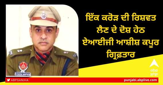 ਚੰਡੀਗੜ੍ਹ: ਵਿਜੀਲੈਂਸ ਬਿਊਰੋ ਪੰਜਾਬ ਨੇ ਅੱਜ ਸਹਾਇਕ ਇੰਸਪੈਕਟਰ ਜਨਰਲ ਆਫ ਪੁਲਿਸ (ਏ.ਆਈ.ਜੀ.) ਅਸ਼ੀਸ਼ ਕਪੂਰ, ਪੀ.ਪੀ.ਐਸ., ਜੋ ਕਿ ਹੁਣ ਕਮਾਂਡੈਂਟ, ਚੌਥੀ ਆਈ.ਆਰ.ਬੀ, ਪਠਾਨਕੋਟ ਦੇ ਅਹੁਦੇ 'ਤੇ ਤਾਇਨਾਤ ਹੈ, ਨੂੰ ਵੱਖ-ਵੱਖ ਚੈੱਕਾਂ ਰਾਹੀਂ ਇੱਕ ਕਰੋੜ ਰੁਪਏ ਦੀ ਰਿਸ਼ਵਤ ਲੈਣ ਦੇ ਦੋਸ਼ ਹੇਠ ਗ੍ਰਿਫਤਾਰ ਕਰ ਲਿਆ ਹੈ। ਇਸ ਮੁਕੱਦਮੇ ਵਿੱਚ ਡੀਐਸਪੀ ਇੰਟੈਲੀਜੈਂਸ ਪਵਨ ਕੁਮਾਰ ਅਤੇ ਏਐਸਆਈ ਹਰਜਿੰਦਰ ਸਿੰਘ ਨੂੰ ਵੀ ਮੁਲਜ਼ਮ ਵਜੋਂ ਨਾਮਜ਼ਦ ਕੀਤਾ ਗਿਆ ਹੈ।