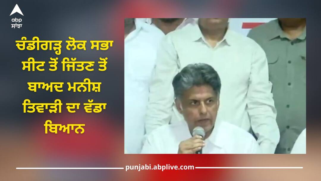 Chandigarh Lok Sabha Election Result 2024: ਚੰਡੀਗੜ੍ਹ ਤੋਂ ਕਾਂਗਰਸ ਦੇ ਨਵੇਂ ਚੁਣੇ ਸੰਸਦ ਮੈਂਬਰ ਮਨੀਸ਼ ਤਿਵਾੜੀ ਨੇ ਇੰਡੀਆ ਗਠਜੋੜ ਦੇ ਸਹਿਯੋਗੀਆਂ ਦਾ ਧੰਨਵਾਦ ਕੀਤਾ ਹੈ। ਉਨ੍ਹਾਂ ਕਿਹਾ ਕਿ ਮੈਂ ਇੰਡੀਆ ਗੱਠਜੋੜ ਦੇ ਸਾਰੇ ਭਾਈਵਾਲਾਂ ਨੂੰ ਉਨ੍ਹਾਂ ਦੀ ਸਖ਼ਤ ਮਿਹਨਤ ਅਤੇ ਸਮਰਪਣ ਲਈ ਧੰਨਵਾਦ ਕਰਨਾ ਚਾਹੁੰਦਾ ਹਾਂ। ਉਨ੍ਹਾਂ ਇਹ ਵੀ ਕਿਹਾ ਕਿ ਜੇਕਰ ਤੁਸੀਂ ਇਸ ਚੋਣ ਨੂੰ ਰਾਸ਼ਟਰੀ ਨਜ਼ਰੀਏ ਤੋਂ ਦੇਖੋਗੇ ਤਾਂ ਤੁਸੀਂ ਦੇਖੋਗੇ ਕਿ ਇਹ ਭਾਜਪਾ ਲਈ ਬੇਭਰੋਸਗੀ ਮਤਾ ਹੈ।