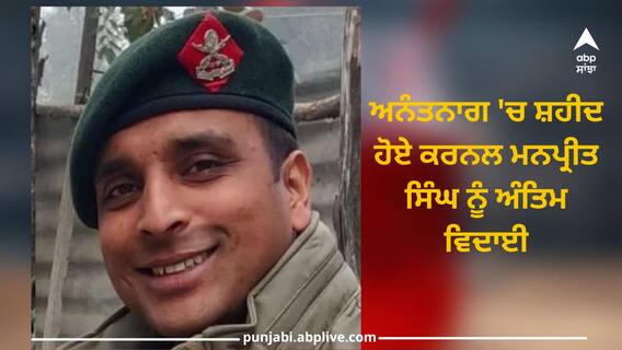 Chandigarh News: ਬੁੱਧਵਾਰ ਨੂੰ ਅਨੰਤਨਾਗ 'ਚ ਸ਼ਹੀਦ ਹੋਏ ਨਿਊ ਚੰਡੀਗੜ੍ਹ ਦੇ ਕਰਨਲ ਮਨਪ੍ਰੀਤ ਸਿੰਘ ਦਾ ਅੱਜ ਉਨ੍ਹਾਂ ਦੇ ਜੱਦੀ ਪਿੰਡ ਭੜੌਜੀਆਂ 'ਚ ਸਰਕਾਰੀ ਸਨਮਾਨਾਂ ਨਾਲ ਅੰਤਿਮ ਸੰਸਕਾਰ ਕੀਤਾ ਜਾਵੇਗਾ। ਕੁਝ ਸਮੇਂ ਬਾਅਦ ਉਨ੍ਹਾਂ ਦੀ ਮ੍ਰਿਤਕ ਦੇਹ ਚੰਡੀ ਮੰਦਰ ਆਰਮੀ ਛਾਉਣੀ ਤੋਂ ਅੰਤਿਮ ਵਿਦਾਈ ਲਈ ਪਿੰਡ ਰਵਾਨਾ ਹੋਵੇਗੀ। ਸ਼ਹੀਦ ਦੀ ਮ੍ਰਿਤਕ ਦੇਹ ਚੰਡੀਗੜ੍ਹ ਦੇ ਕੇਂਦਰੀ ਮਾਰਗ ਰਾਹੀਂ ਚੰਡੀ ਮੰਦਰ ਛਾਉਣੀ ਤੋਂ ਪੀਜੀਆਈ ਰਾਹੀਂ ਨਿਊ ਚੰਡੀਗੜ੍ਹ ਵਿੱਚ ਦਾਖ਼ਲ ਹੋਵੇਗੀ।