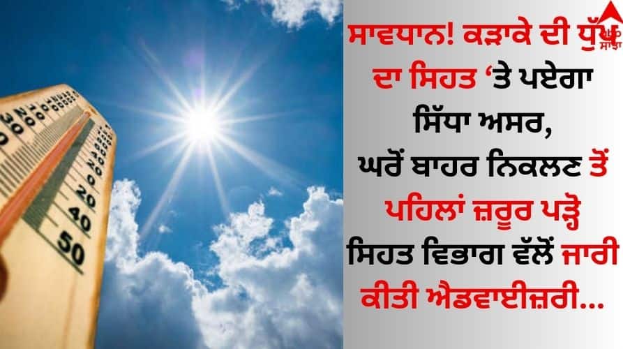 ਤੇਜ਼ ਧੁੱਪ ਅਤੇ ਗਰਮੀ ਦੇ ਮੱਦੇਨਜ਼ਰ ਸਿਹਤ ਵਿਭਾਗ ਵੱਲੋਂ ਐਡਵਾਈਜ਼ਰੀ ਜਾਰੀ ਕੀਤੀ ਗਈ ਹੈ। ਸਿਹਤ ਵਿਭਾਗ ਨੇ ਗਰਮੀ ਦੀ ਲਹਿਰ ਤੋਂ ਬਚਣ ਦੇ ਤਰੀਕਿਆਂ ਨੂੰ ਲੈ ਕੇ ਇਹ ਐਡਵਾਈਜ਼ਰੀ ਜਾਰੀ ਕੀਤੀ ਹੈ। ਸਿਹਤ ਵਿਭਾਗ ਨੇ ਲੋਕਾਂ ਨੂੰ ਗਰਮੀ ਦੇ ਸਿਹਤ 'ਤੇ ਪੈਣ ਵਾਲੇ ਪ੍ਰਭਾਵਾਂ ਬਾਰੇ ਜਾਗਰੂਕ ਕਰਨ ਲਈ ਐਡਵਾਈਜ਼ਰੀ 'ਚ ਕੁਝ ਸੁਝਾਅ ਦਿੱਤੇ ਹਨ। ਇਸ ਐਡਵਾਈਜ਼ਰੀ ਵਿੱਚ ਖਾਸ ਕਰਕੇ ਬੱਚਿਆਂ, ਬਜ਼ੁਰਗਾਂ ਅਤੇ ਬਿਮਾਰ ਲੋਕਾਂ ਨੂੰ ਗਰਮੀਆਂ ਵਿੱਚ ਵਿਸ਼ੇਸ਼ ਸਾਵਧਾਨੀਆਂ ਵਰਤਣ ਦੀ ਸਲਾਹ ਦਿੱਤੀ ਗਈ ਹੈ।