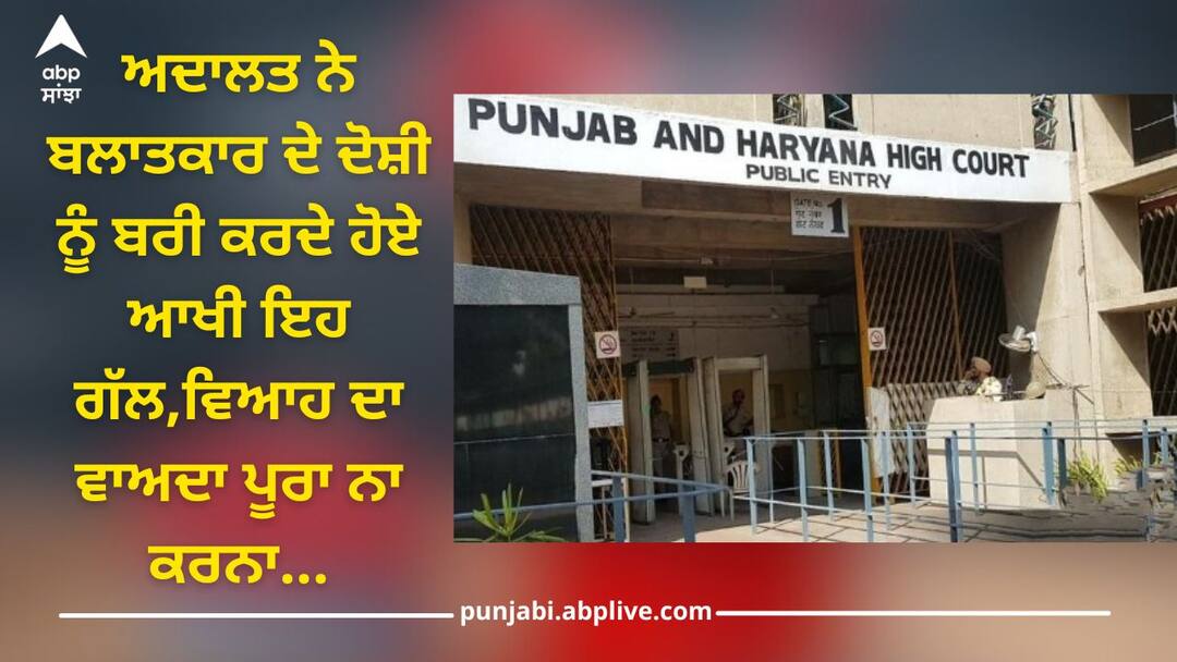 Punjab-Haryana High Court: ਪੰਜਾਬ-ਹਰਿਆਣਾ ਹਾਈਕੋਰਟ ਨੇ ਵਿਆਹ ਦਾ ਝਾਂਸਾ ਦੇ ਕੇ ਪੀੜਤਾ ਨਾਲ ਸਰੀਰਕ ਸੰਬੰਧ ਬਣਾਉਣ ਦੇ ਮਾਮਲੇ 'ਚ ਪ੍ਰੇਮੀ ਨੂੰ ਬਰੀ ਕਰਦਿਆਂ 7 ਸਾਲ ਦੀ ਸਜ਼ਾ ਦਾ ਹੁਕਮ ਰੱਦ ਕਰ ਦਿੱਤਾ ਹੈ। ਹਾਈਕੋਰਟ ਨੇ ਕਿਹਾ ਕਿ ਵਿਆਹ ਦੇ ਵਾਅਦੇ ਨੂੰ ਪੂਰਾ ਨਾ ਕਰਨ ਦਾ ਮਤਲਬ ਇਹ ਨਹੀਂ ਹੋ ਸਕਦਾ ਕਿ ਵਾਅਦਾ ਝੂਠਾ ਸੀ। ਬਲਾਤਕਾਰ ਦਾ ਮਾਮਲਾ ਉਦੋਂ ਹੀ ਸਾਹਮਣੇ ਆਉਂਦਾ ਹੈ ਜਦੋਂ ਵਾਅਦੇ ਪਿੱਛੇ ਧੋਖਾ ਦੇਣ ਦਾ ਇਰਾਦਾ ਹੋਵੇ।