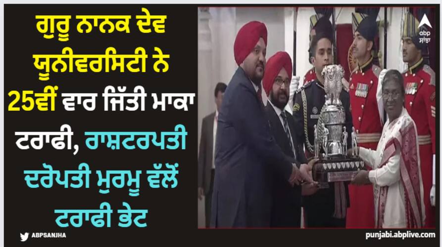 Amritsar News: ਗੁਰੂ ਨਾਨਕ ਦੇਵ ਯੂਨੀਵਰਸਿਟੀ ਨੂੰ ਮੌਲਾਨਾ ਅਬੁਲ ਕਲਾਮ ਆਜ਼ਾਦ ਟਰਾਫ਼ੀ (ਮਾਕਾ) ਮਿਲੀ ਹੈ। ਯੂਨੀਵਰਸਿਟੀ ਦੇ ਉਪ-ਕੁਲਪਤੀ ਡਾ. ਜਸਪਾਲ ਸਿੰਘ ਸੰਧੂ ਨੂੰ ਇਹ ਟਰਾਫੀ ਰਾਸ਼ਟਰਪਤੀ ਦਰੋਪਤੀ ਮੁਰਮੂ ਵੱਲੋਂ ਦਿੱਤੀ ਗਈ ਹੈ। ਨਾਨਕ ਦੇਵ ਯੂਨੀਵਰਸਿਟੀ ਨੇ 25ਵੀਂ ਵਾਰ ਇਹ ਟਰਾਫੀ ਹਾਸਲ ਕੀਤੀ ਹੈ।