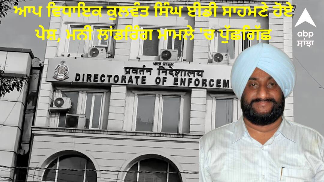 Punjab News: ਮੋਹਾਲੀ ਤੋਂ ਆਮ ਆਦਮੀ ਪਾਰਟੀ (ਆਪ) ਦੇ ਵਿਧਾਇਕ ਕੁਲਵੰਤ ਸਿੰਘ ਤੋਂ ਇਨਫੋਰਸਮੈਂਟ ਡਾਇਰੈਕਟੋਰੇਟ (ਈ.ਡੀ.) ਦੇ ਜਲੰਧਰ ਸਥਿਤ ਦਫਤਰ 'ਚ ਪੁੱਛਗਿੱਛ ਕੀਤੀ ਜਾ ਰਹੀ ਹੈ। ਉਸ ਤੋਂ ਮਨੀ ਲਾਂਡਰਿੰਗ ਮਾਮਲੇ 'ਚ ਪੁੱਛਗਿੱਛ ਕੀਤੀ ਜਾ ਰਹੀ ਹੈ। ਈਡੀ ਨੇ ਇੱਕ ਦਿਨ ਪਹਿਲਾਂ ਕੁਲਵੰਤ ਸਿੰਘ ਨੂੰ ਸੰਮਨ ਭੇਜ ਕੇ ਪੁੱਛਗਿੱਛ ਲਈ ਬੁਲਾਇਆ ਸੀ।