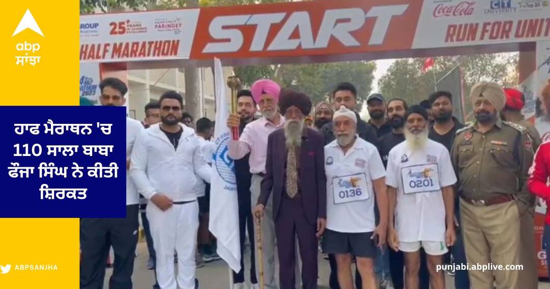 Jalandhar News: ਸੀਟੀ ਇੰਸਟੀਚਿਊਟ ਵੱਲੋਂ ਅੱਜ ਜਲੰਧਰ ਵਿੱਚ 14ਵੀਂ ਹਾਫ ਮੈਰਾਥਨ ਕਰਵਾਈ ਹੈ। ਇਸ ਵਿੱਚ ਬਜ਼ੁਰਗਾਂ ਤੋਂ ਲੈ ਕੇ ਬੱਚਿਆਂ ਤੱਕ ਸਾਰਿਆਂ ਨੇ ਸ਼ਮੂਲੀਅਤ ਕੀਤੀ, ਖਾਸ ਗੱਲ ਇਹ ਹੈ ਕਿ ਇਸ ਮੌਕੇ 111 ਸਾਲਾ ਫੌਜਾ ਸਿੰਘ ਮੌਜੂਦ ਸਨ। ਇਹ ਮੈਰਾਥਨ ਸੀਟੀ ਇੰਸਟੀਚਿਊਟ ਦੇ ਸ਼ਾਹਪੁਰ ਕੈਂਪਸ ਤੋਂ ਸ਼ੁਰੂ ਹੋ ਕੇ ਸੀਟੀ ਕੈਂਪਸ ਮਕਸੂਦਾ ਵਿਖੇ ਸਮਾਪਤ ਹੋਈ। ਇਹ ਕਰੀਬ 21 ਕਿਲੋਮੀਟਰ ਦੀ ਮੈਰਾਥਨ ਸੀ। ਇਸ ਦੌਰਾਨ ਪੰਜਾਬੀ ਕਲਾਕਾਰ ਗੁਰਨਾਮ ਭੁੱਲਰ, ਸਰਗੁਣ ਮਹਿਤਾ, ਰਵਨੀਤ ਸਿੰਘ, ਖਾਨ ਸਾਹਬ ਵਰਗੇ ਵੱਡੇ ਕਲਾਕਾਰਾਂ ਨੇ ਪ੍ਰੋਗਰਾਮ ਦਾ ਰੰਗ ਬੰਨ੍ਹਿਆ।