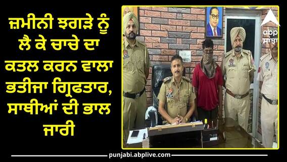 Punjab News: ਜਲੰਧਰ ਸ਼ਹਿਰ ਦੇ ਸ਼ਾਹਕੋਟ ਨੇੜੇ ਜ਼ਮੀਨੀ ਵਿਵਾਦ ਨੂੰ ਲੈ ਕੇ ਭਤੀਜੇ ਨੇ ਆਪਣੇ ਚਾਚੇ ਦਾ ਕਤਲ ਕਰ ਦਿੱਤਾ। ਪੁਲਿਸ ਨੇ ਮੁਲਜ਼ਮ ਭਤੀਜੇ ਨੂੰ ਗ੍ਰਿਫ਼ਤਾਰ ਕਰ ਲਿਆ ਹੈ, ਜਦੋਂ ਕਿ ਉਸ ਦੇ ਤਿੰਨ ਸਾਥੀ ਹਾਲੇ ਫ਼ਰਾਰ ਹਨ। ਪੁਲਿਸ ਜਲਦ ਹੀ ਗ੍ਰਿਫਤਾਰ ਦੋਸ਼ੀ ਨੂੰ ਅਦਾਲਤ 'ਚ ਪੇਸ਼ ਕਰਕੇ ਪੁੱਛਗਿੱਛ ਲਈ ਰਿਮਾਂਡ 'ਤੇ ਲੈ ਲਵੇਗੀ।
