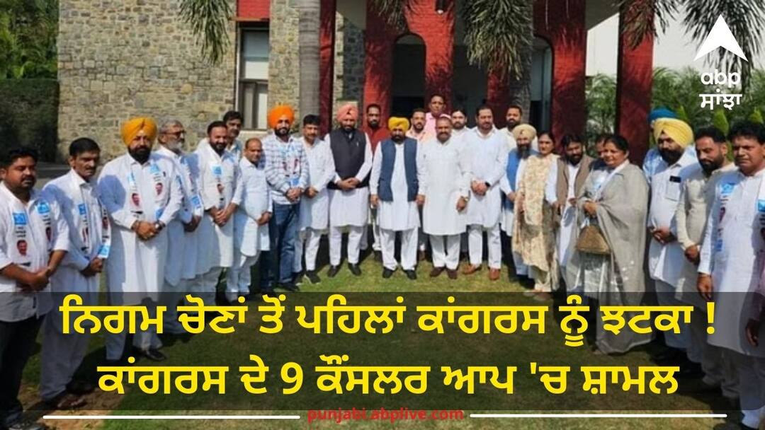 Punjab News: ਨਗਰ ਨਿਗਮ ਚੋਣਾਂ ਤੋਂ ਪਹਿਲਾਂ ਜਲੰਧਰ ‘ਚ ਕਾਂਗਰਸ ਨੂੰ ਵੱਡਾ ਝਟਕਾ ਲੱਗਾ ਹੈ। ਸ਼ਨੀਵਾਰ ਨੂੰ ਜਲੰਧਰ ਤੋਂ 10 ਕਾਂਗਰਸੀ ਕੌਂਸਲਰ ਆਮ ਆਦਮੀ ਪਾਰਟੀ ਵਿੱਚ ਸ਼ਾਮਲ ਹੋ ਗਏ। ਮੁੱਖ ਮੰਤਰੀ ਭਗਵੰਤ ਮਾਨ ਨੇ ਰਸਮੀ ਤੌਰ ‘ਤੇ ਸਾਰੇ ਕੌਂਸਲਰਾਂ ਨੂੰ ਪਾਰਟੀ ਵਿੱਚ ਸ਼ਾਮਲ ਕੀਤਾ ਅਤੇ ਉਨ੍ਹਾਂ ਦਾ ਸਵਾਗਤ ਕੀਤਾ।