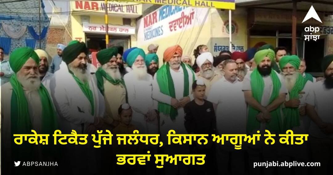 Jalandhar News: ਭਾਰਤੀ ਕਿਸਾਨ ਯੂਨੀਅਨ ਦੇ ਆਗੂ ਰਾਕੇਸ਼ ਟਿਕੈਤ ਜਲੰਧਰ ਪੁੱਜੇ। ਕਿਸਾਨਾਂ ਨਾਲ ਗੱਲਬਾਤ ਕਰਦਿਆਂ ਟਿਕੈਤ ਨੇ ਕਿਹਾ ਕਿ ਸਰਕਾਰਾਂ ਅਜੇ ਵੀ ਕਿਸਾਨਾਂ ਨੂੰ ਧੋਖਾ ਦੇ ਰਹੀਆਂ ਹਨ।