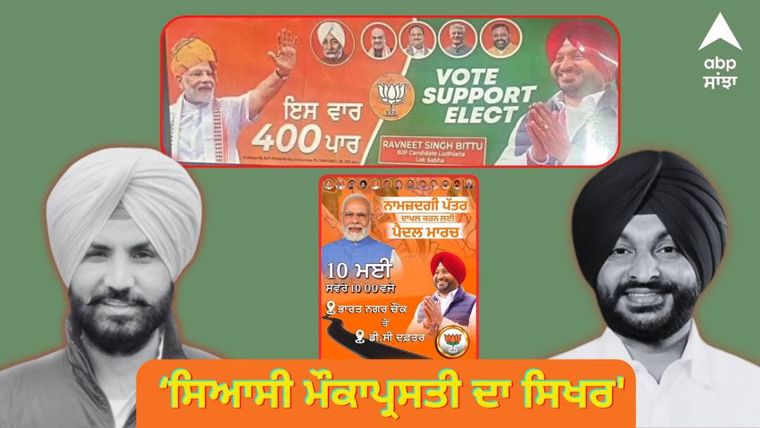 Ludhiana News: ਲੁਧਿਆਣਾ ਤੋਂ ਭਾਰਤੀ ਜਨਤਾ ਪਾਰਟੀ ਦੇ ਉਮੀਦਵਾਰ ਰਵਨੀਤ ਸਿੰਘ ਬਿੱਟੂ ਤੇ ਕਾਂਗਰਸ ਦੇ ਉਮੀਦਵਾਰ ਰਾਜਾ ਵੜਿੰਗ ਵਿਚਾਲੇ ਜ਼ੁਬਾਨੀ ਜੰਗ ਤੋਂ ਇਲਾਵਾ ਟਵੀਟ ਵਾਰ ਵੀ ਚੱਲ ਰਹੀ ਹੈ। ਇਸ ਮੌਕੇ ਰਾਜਾ ਵੜਿੰਗ ਨੇ ਰਵਨੀਤ ਬਿੱਟੂ ਦੇ ਨਾਮਜ਼ਦਗੀ ਭਰੇ ਜਾਣ ਨੂੰ ਲੈ ਕੇ ਸੋਸ਼ਲ ਮੀਡੀਆ ਉੱਤੇ ਪਾਇਆ ਪੋਸਟਰ ਸਾਂਝਾ ਕੀਤਾ ਹੈ ਜਿਸ ਉੱਤੇ ਲਿਖਿਆ, ਸਿਆਸੀ ਮੌਕਾਪ੍ਰਸਤੀ ਦਾ ਸਿਖਰ