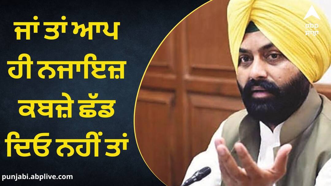 ਮੰਤਰੀ ਨੇ ਕਿਹਾ ਕਿ ਪੁਰਾਣੀਆਂ ਸਰਕਾਰਾਂ 'ਚ ਮੰਤਰੀਆਂ ਤੇ ਵਿਧਾਇਕਾਂ ਦੀ ਮਿਲੀਭੁਗਤ ਕਾਰਨ ਸਰਕਾਰੀ ਜ਼ਮੀਨਾਂ 'ਤੇ ਕਬਜ਼ੇ ਲਗਾਤਾਰ ਵਧਦੇ ਗਏ ਹਨ। ਸਾਬਕਾ ਮੰਤਰੀਆਂ ਤੇ ਵਿਧਾਇਕਾਂ ਨੇ ਸਰਕਾਰੀ ਜ਼ਮੀਨਾਂ ’ਤੇ ਕਬਜ਼ੇ ਦੀ ਨਾਜਾਇਜ਼ ਵਸੂਲੀ ਕੀਤੀ। 'ਆਪ' ਦੀ ਸਰਕਾਰ 'ਚ ਅਜਿਹਾ ਨਹੀਂ ਹੋਵੇਗਾ।