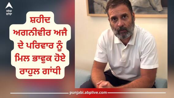 Ludhiana News: ਕਾਂਗਰਸ ਦੇ ਸੀਨੀਅਰ ਲੀਡਰ ਰਾਹੁਲ ਗਾਂਧੀ ਨੇ ਖੰਨਾ ਦੇ ਪਿੰਡ ਰਾਮਗੜ੍ਹ ਸਰਦਾਰਾਂ ਵਿੱਚ ਸ਼ਹੀਦ ਅਗਨੀਵੀਰ ਅਜੈ ਕੁਮਾਰ ਦੇ ਪਰਿਵਾਰ ਨਾਲ ਮੁਲਾਕਾਤ ਕੀਤੀ। ਰਾਹੁਲ ਗਾਂਧੀ ਨੇ ਸ਼ਹੀਦ ਦੇ ਮਾਤਾ-ਪਿਤਾ ਤੇ ਛੇ ਭੈਣਾਂ ਨਾਲ ਮੁਲਾਕਾਤ ਕੀਤੀ ਤੇ ਸ਼ਹੀਦ ਅਜੈ ਦੀ ਸ਼ਹਾਦਤ ਨੂੰ ਸ਼ਰਧਾਂਜਲੀ ਦੇਣ ਲਈ ਸਿਰ ਝੁਕਾਇਆ।